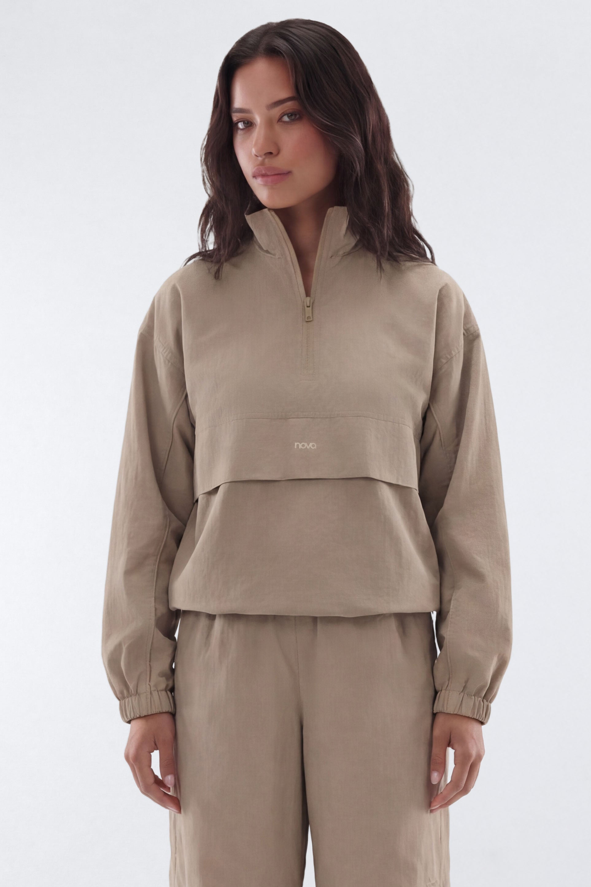 Available In Black, Red And Taupe.NylonMock Neck26.5" Length From HPSSide PocketsAdjustable Elastic ToggleHalf ZipPair With "Nylon 32" Track Pant"Self: 100% NylonLining: 100% PolyesterImportedAvailable In Plus Sizes