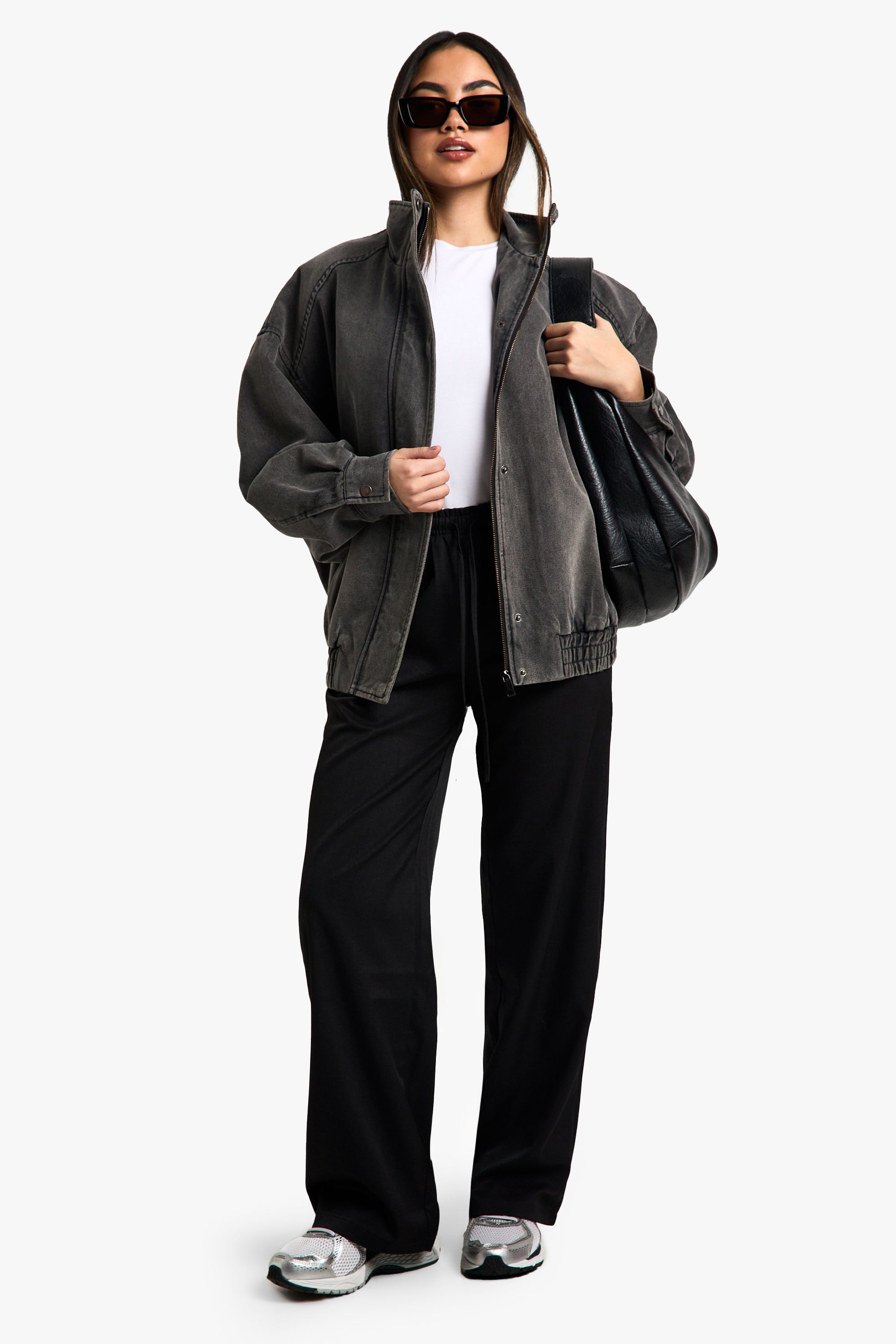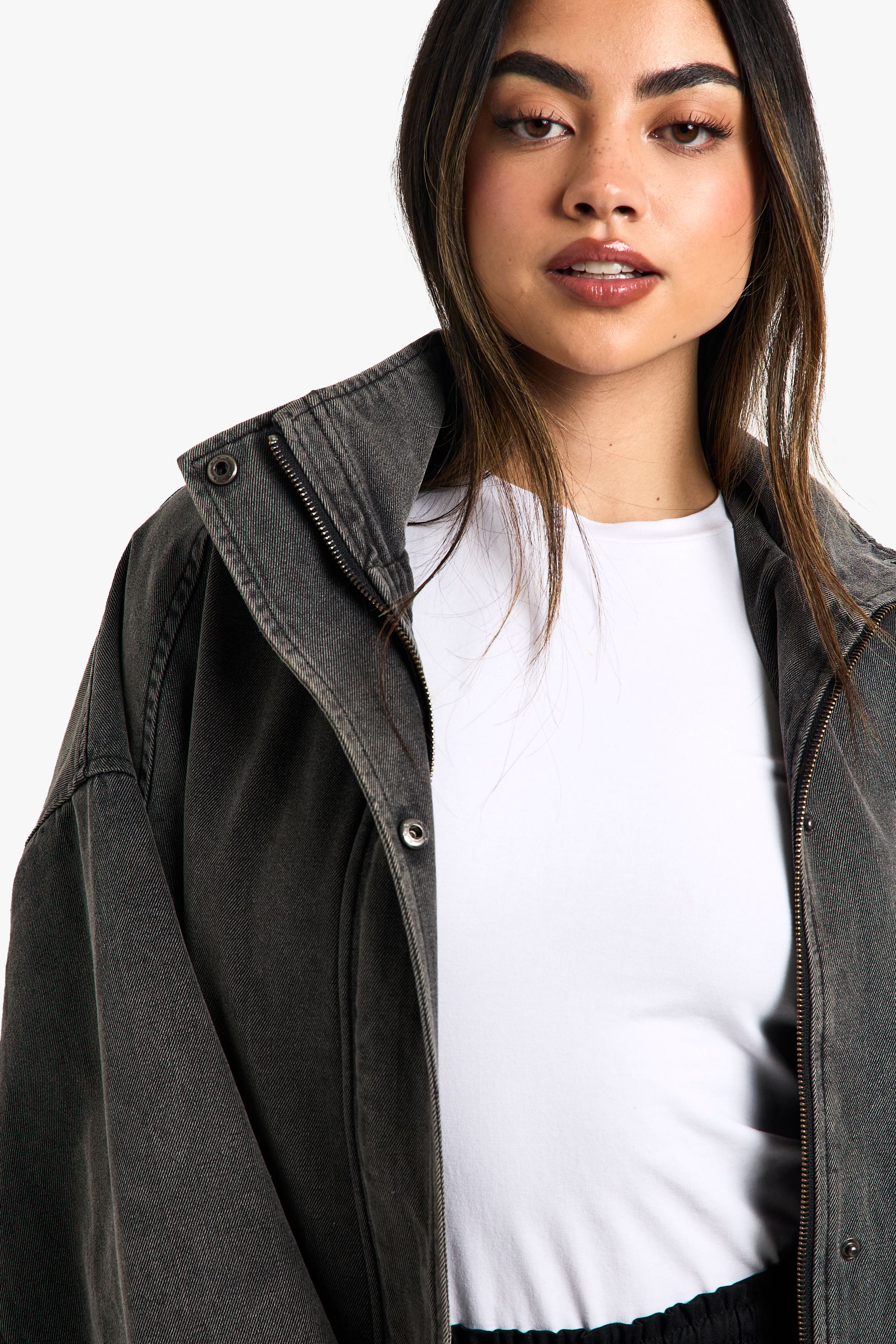 • Oversized denim-bomber hybrid design