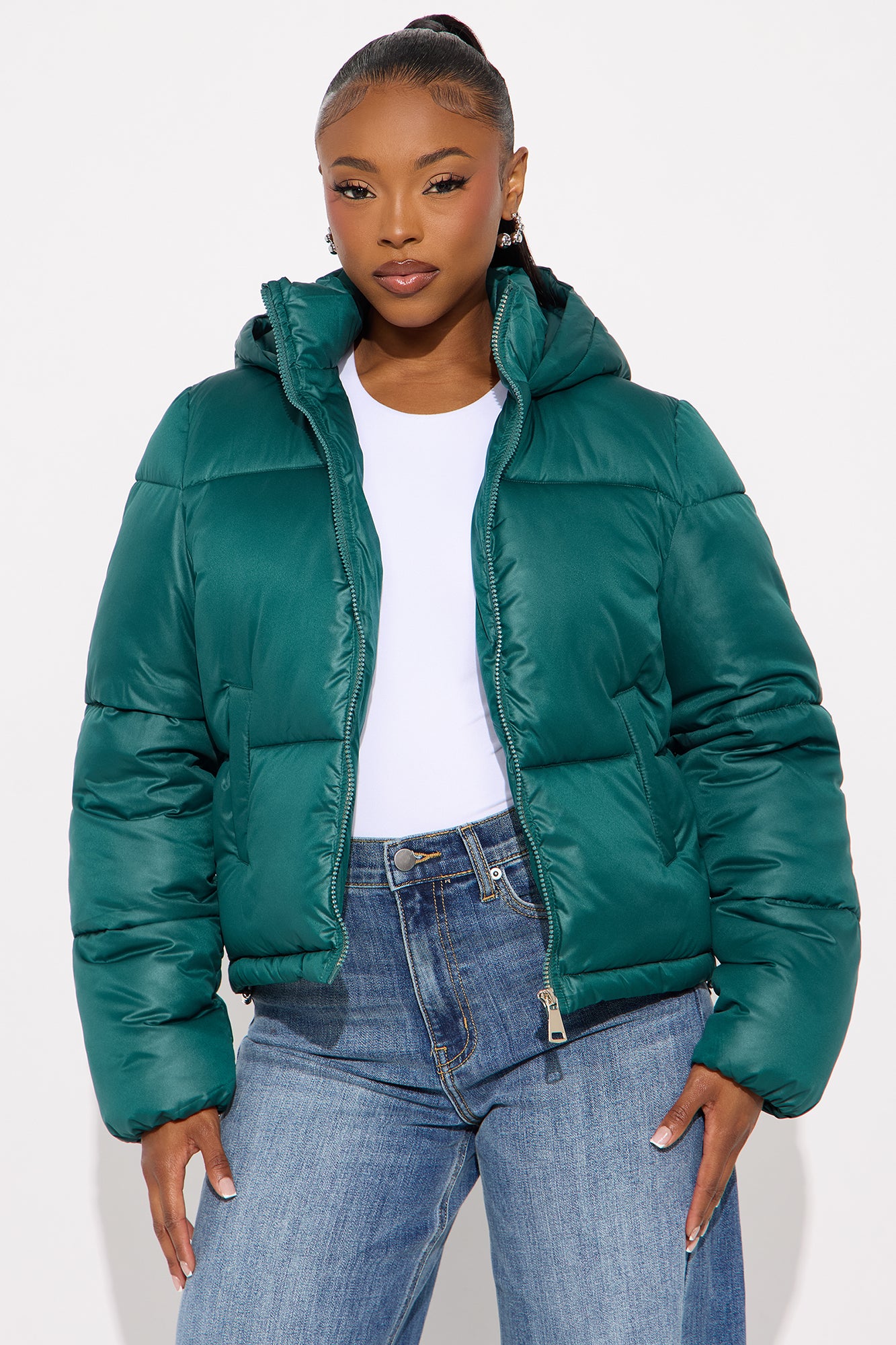 Available In Black, Chocolate, Hunter, Light Blue, Sand And White.Puffer JacketZipper FrontHoodedHigh NeckFront PocketsShell: 100% PolyesterLining: 100% PolyesterPadding: 100% PolyesterImported