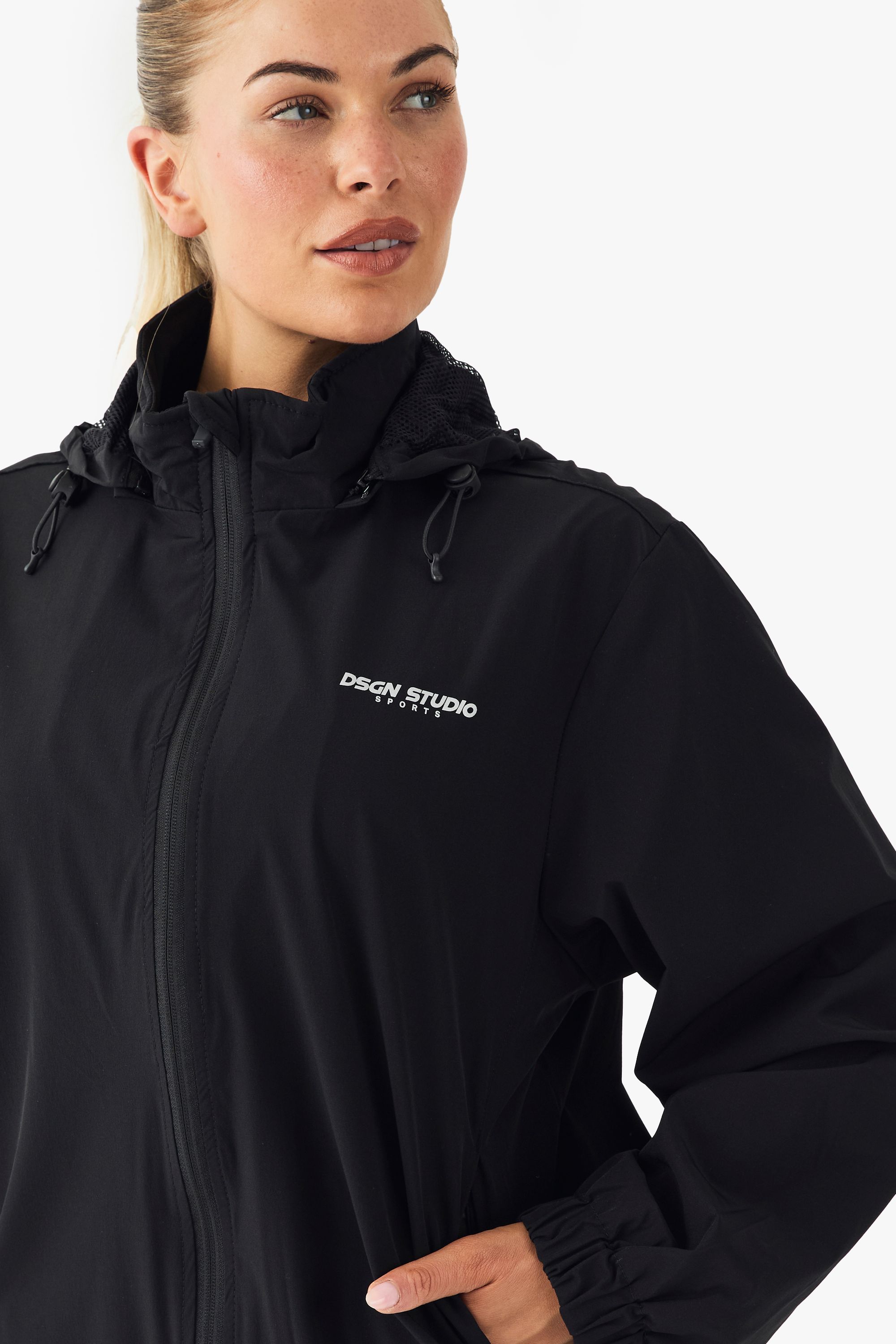 - DSGN Studio branding detail on chest for authentic sports styling This versatile DSGN Studio Sport jacket combines functionality with contemporary athleisure style. The lightweight construction offers freedom of movement whilst the full-length zip allows for quick ventilation control during intense training sessions. Perfect for outdoor runs in changeable British weather, the adjustable hood provides protection when needed. Style with the matching DSGN Studio shorts as shown for a coordinated workout ensemble, or pair with leggings for yoga and studio classes. The relaxed fit makes it ideal for layering over sports bras or vests, whilst the practical pockets keep your essentials secure. This jacket transitions effortlessly from morning jogs to weekend errands - simply throw on with trainers and activewear for an effortlessly sporty look that performs as good as it looks.