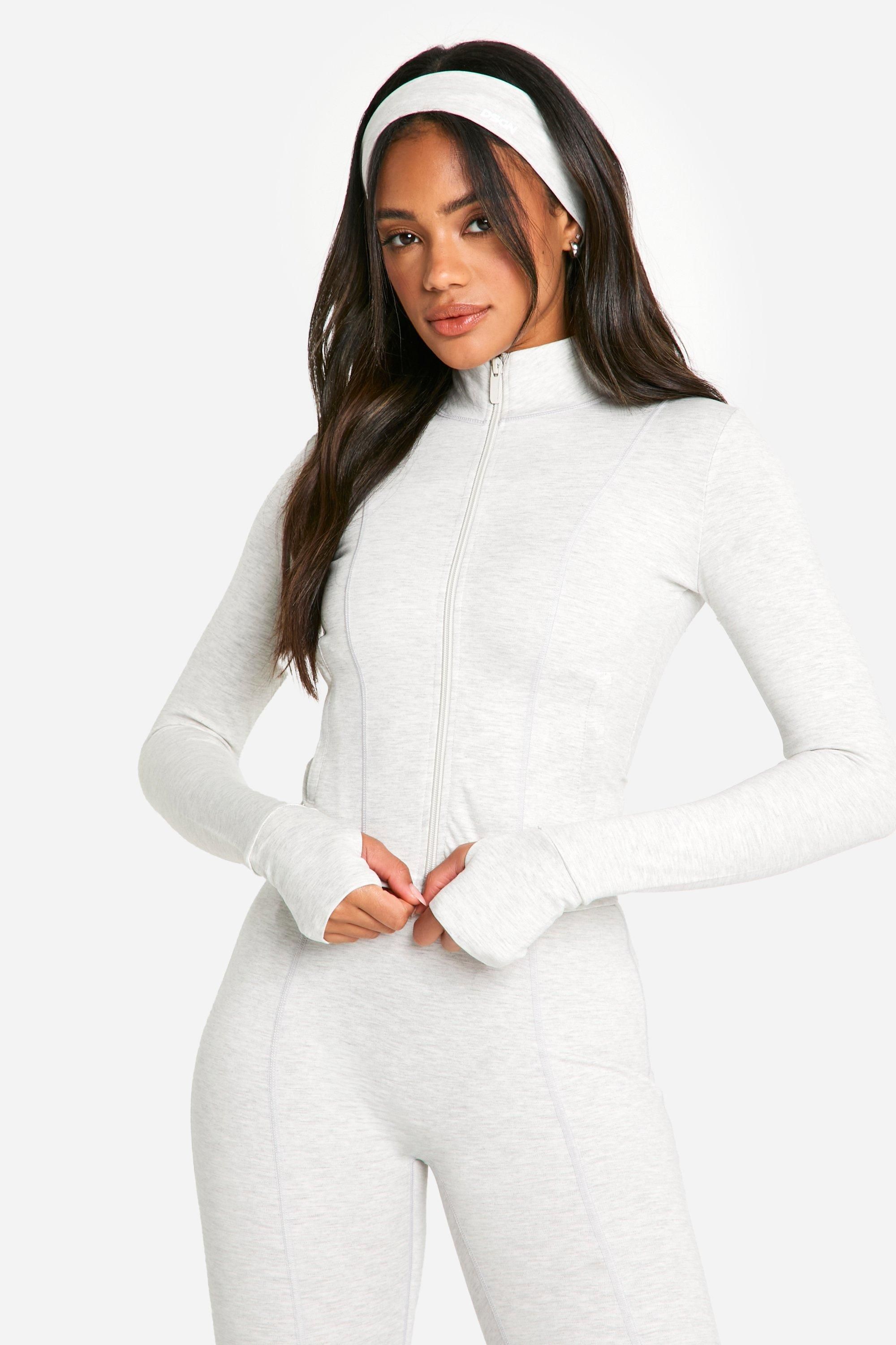 • The DSGN Studio Sculpt Jacket redefines activewear with its body-contouring fit and ultra-soft fabric. This versatile piece works brilliantly as part of a coordinated set with matching bottoms for a complete athleisure look, or can be styled with your favourite workout leggings. The cropped length and high neckline create a flattering silhouette that transitions effortlessly from gym sessions to casual outings. Pair with trainers and a headband for an intense workout, or layer under an oversized gilet when heading to and from fitness classes. Recommended to size up for a more relaxed fit, this jacket offers the perfect balance of comfort and style for those who want to look put-together whilst staying active. The thoughtful thumb hole detail ensures sleeves stay in place during dynamic movements.