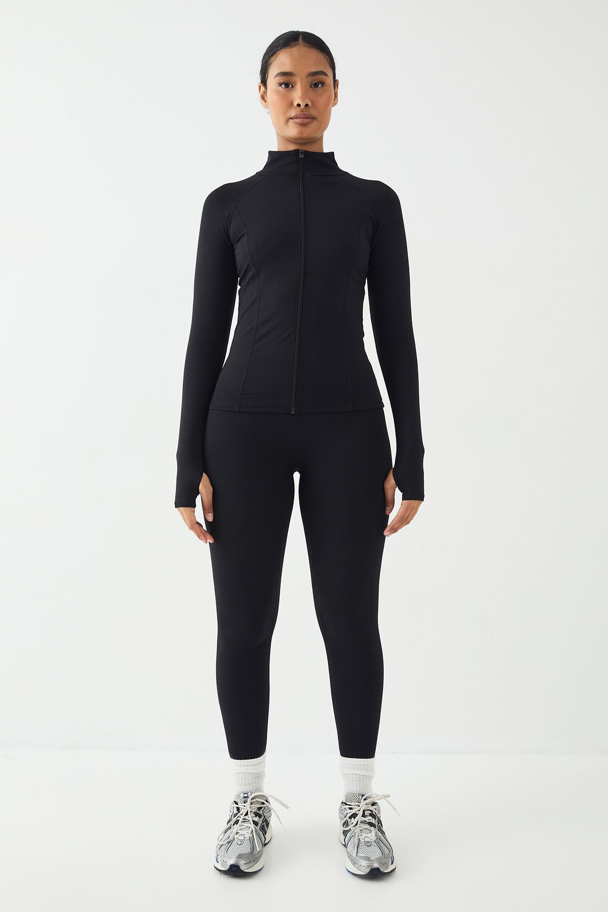 - The DSGN Studio Sculpt Jacket redefines activewear with its body-contouring silhouette and technical features. Designed to move with you, this ultra-soft jacket combines functionality with fashion-forward aesthetics. The streamlined fit and high neckline create a flattering profile whilst the full-length zip allows for customisable ventilation during your workout. Style with the matching leggings as shown for a coordinated gym ensemble, or pair with your favourite sports shorts for high-intensity training sessions. The thoughtful thumb hole detail keeps sleeves in place during dynamic movements. Perfect for morning runs, yoga sessions, or simply elevating your athleisure wardrobe, this versatile piece transitions seamlessly from workout to weekend casual when paired with trainers and a crossbody bag for an effortlessly cool off-duty look.
