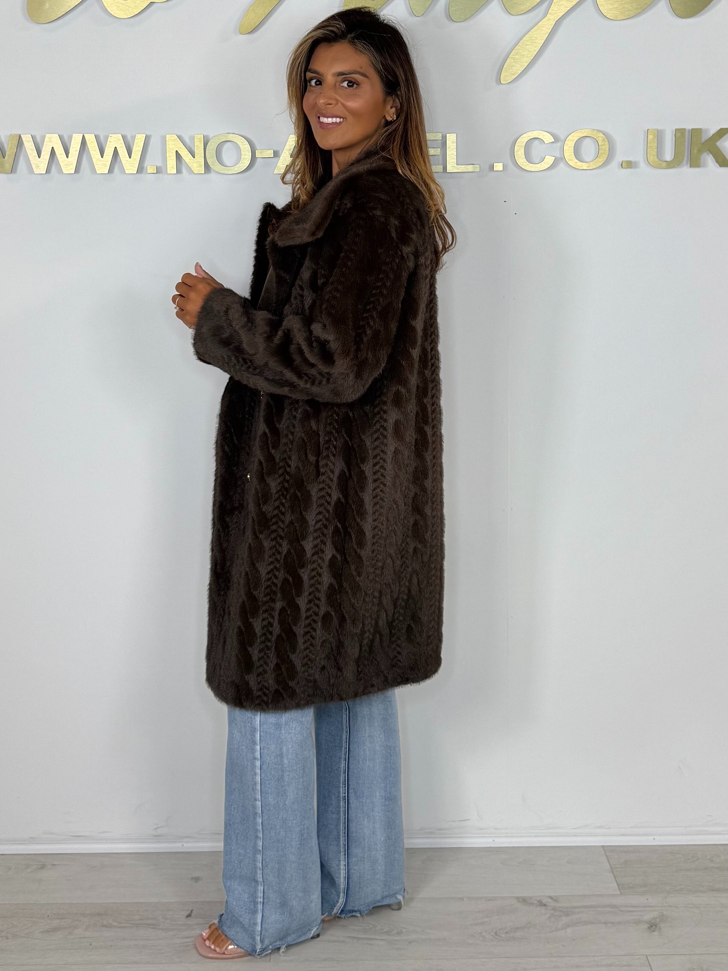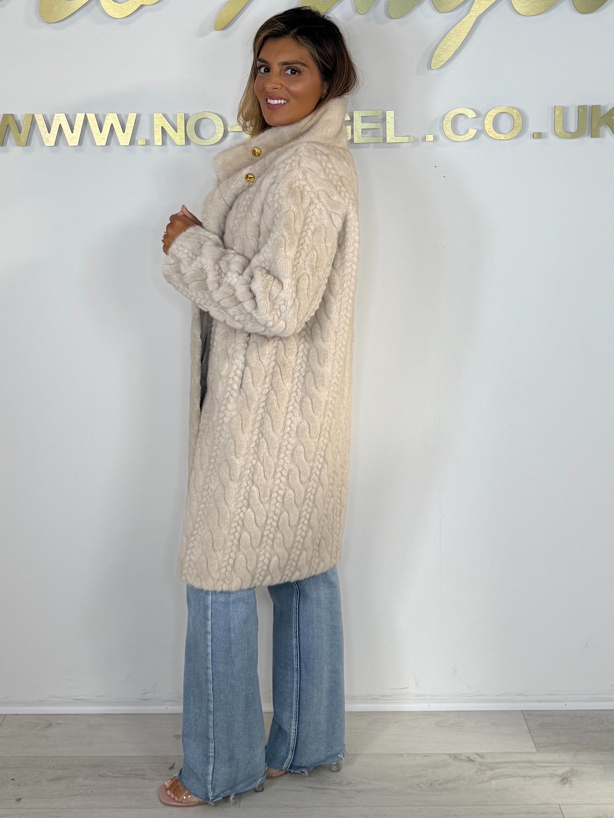 Faux Fur Cable Design Double Breasted Gold Button Long Jacket (2 Colours)
