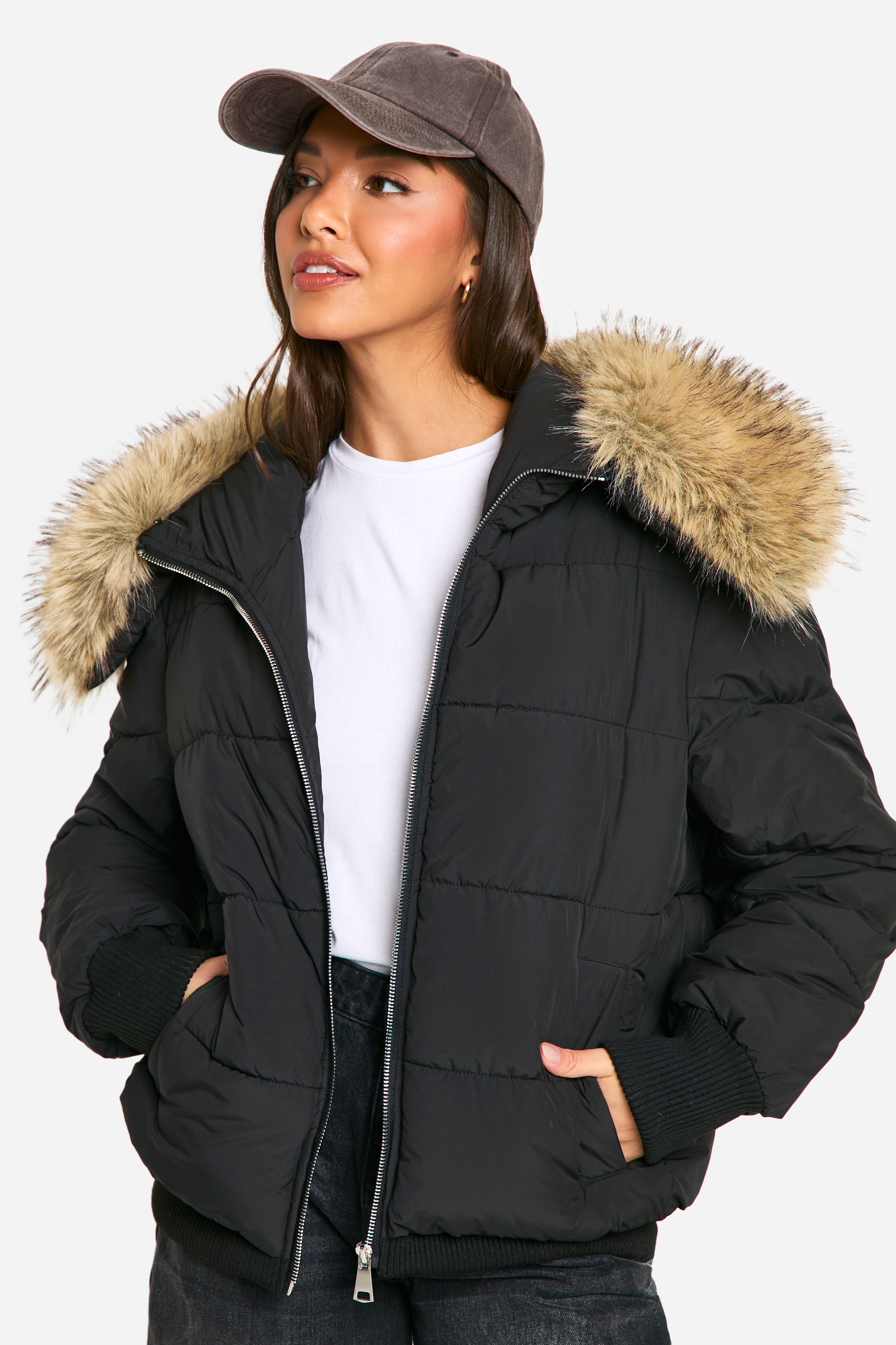- Embrace the chilly weather with this eye-catching puffer jacket from Boohoo. The standout faux fur collar adds a touch of glamour to the classic puffer style, making it perfect for those who want to stay cosy without compromising on fashion. The cropped length pairs brilliantly with high-waisted jeans or trousers, creating a balanced silhouette. For a casual day out, team it with your favourite trainers and a baseball cap for an effortlessly cool look. When the temperature drops, layer it over a chunky knit jumper and add some thermal leggings for extra warmth. This versatile piece transitions seamlessly from daytime errands to evening gatherings, making it a must-have addition to your winter wardrobe. Whether you're heading to a family lunch or meeting friends for a coffee, this jacket will keep you snug and stylish.