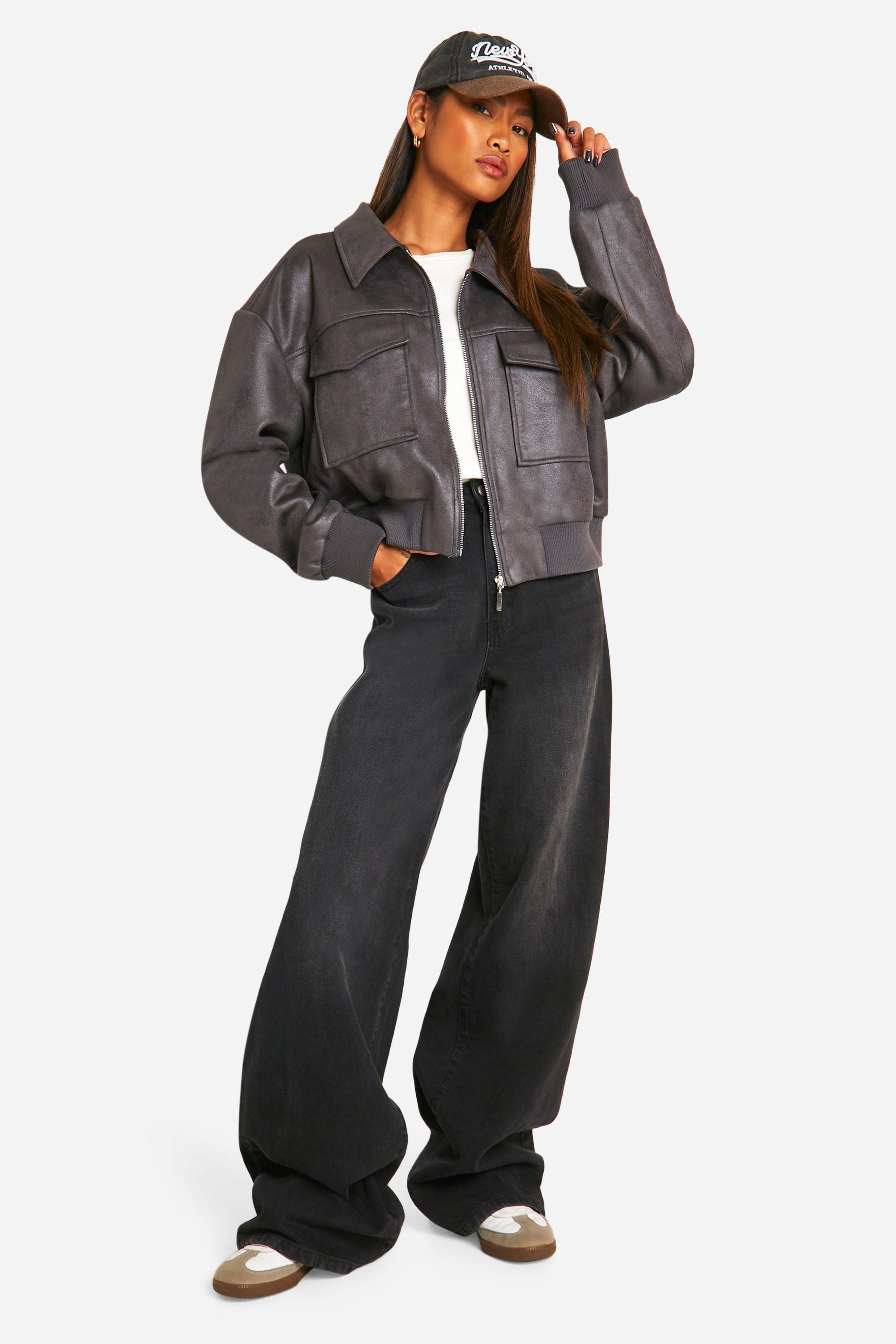 - Embrace casual chic with this faux suede bomber jacket from Boohoo. The oversized silhouette offers a contemporary twist on a classic style, perfect for the fashion-forward woman who values both comfort and trend-setting looks. Style it with wide-leg trousers and trainers for an effortlessly cool daytime ensemble, or throw it over a mini dress and ankle boots for a night out with friends. The versatile design makes it ideal for various casual occasions, from weekend brunches to family gatherings. For a sporty edge, pair it with a baseball cap and your favourite jeans. The soft-touch fabric and roomy fit ensure you'll stay comfortable while turning heads. This bomber jacket is a must-have piece that will quickly become a go-to in your wardrobe, offering endless styling possibilities for the modern, style-conscious woman.