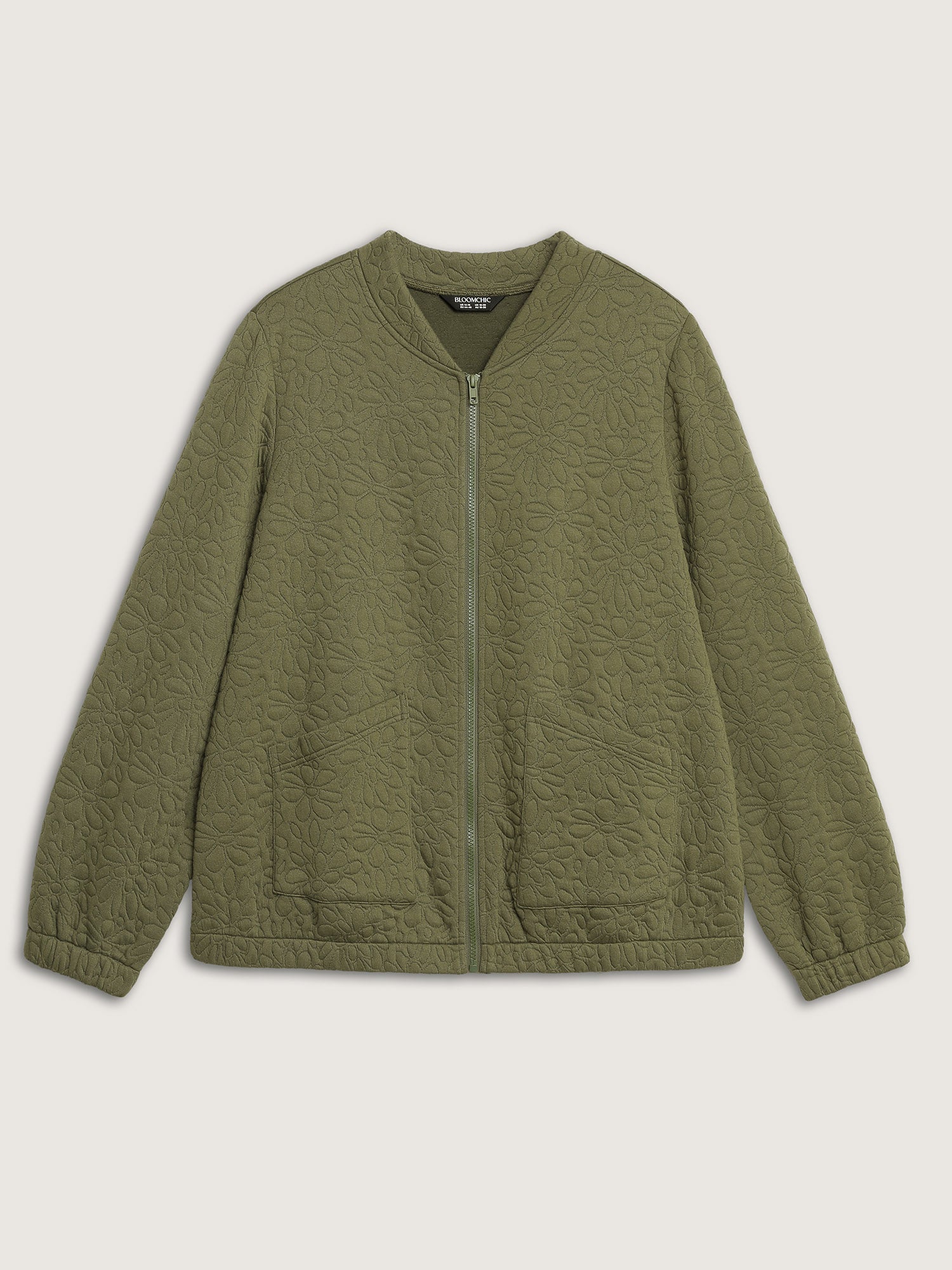 Floral Textured Zipper Front Jacket