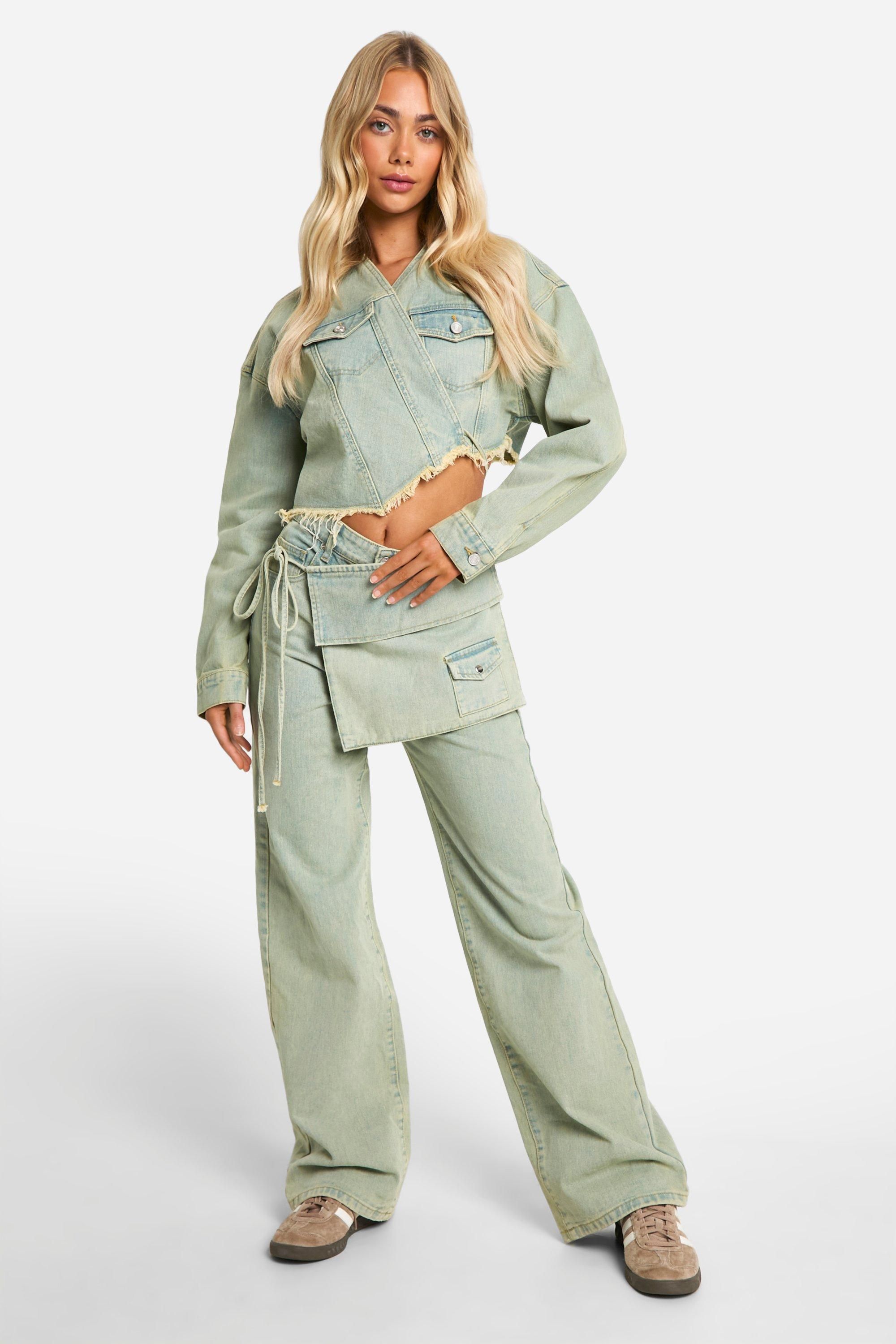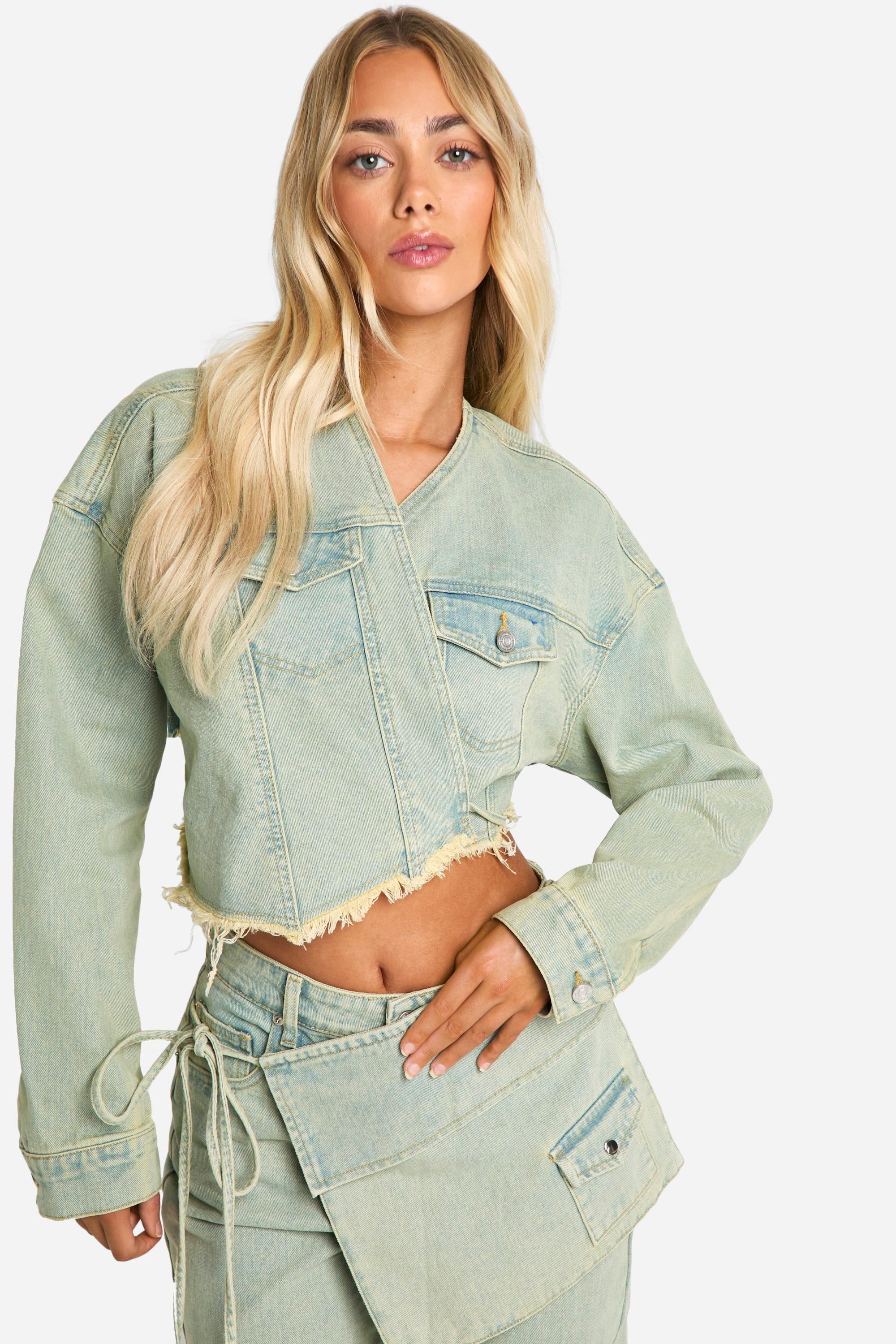 - Make a bold statement with this edgy cropped denim jacket from Boohoo. Perfect for the fashion-forward woman who loves to stay ahead of the trends, this jacket offers a fresh take on a classic style. The frayed hem adds a touch of rebellious charm, while the adjustable tie belt allows you to create a silhouette that flatters your figure. Pair it with high-waisted jeans and trainers for a casual day out, or throw it over a flowy dress for a chic contrast at family gatherings. The versatile design makes it an ideal choice for various casual occasions, from brunches with friends to outdoor festivals. Layer it over a crop top and wide-leg trousers for a coordinated look that's both comfortable and stylish. This jacket is a must-have piece that will quickly become a staple in your wardrobe, offering endless styling possibilities for the modern, trend-conscious woman.