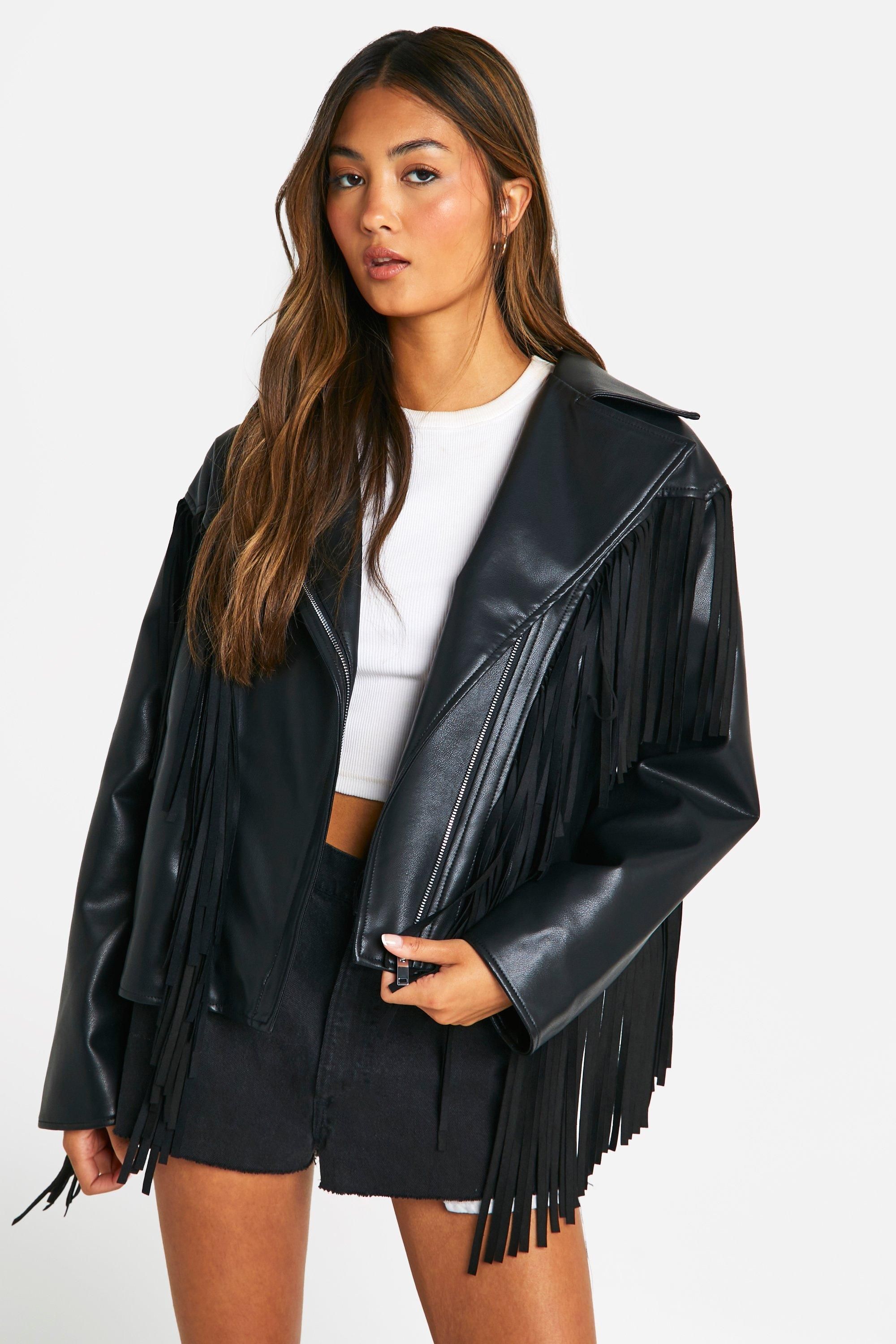 Fringe Detail Faux Leather Biker Jacket