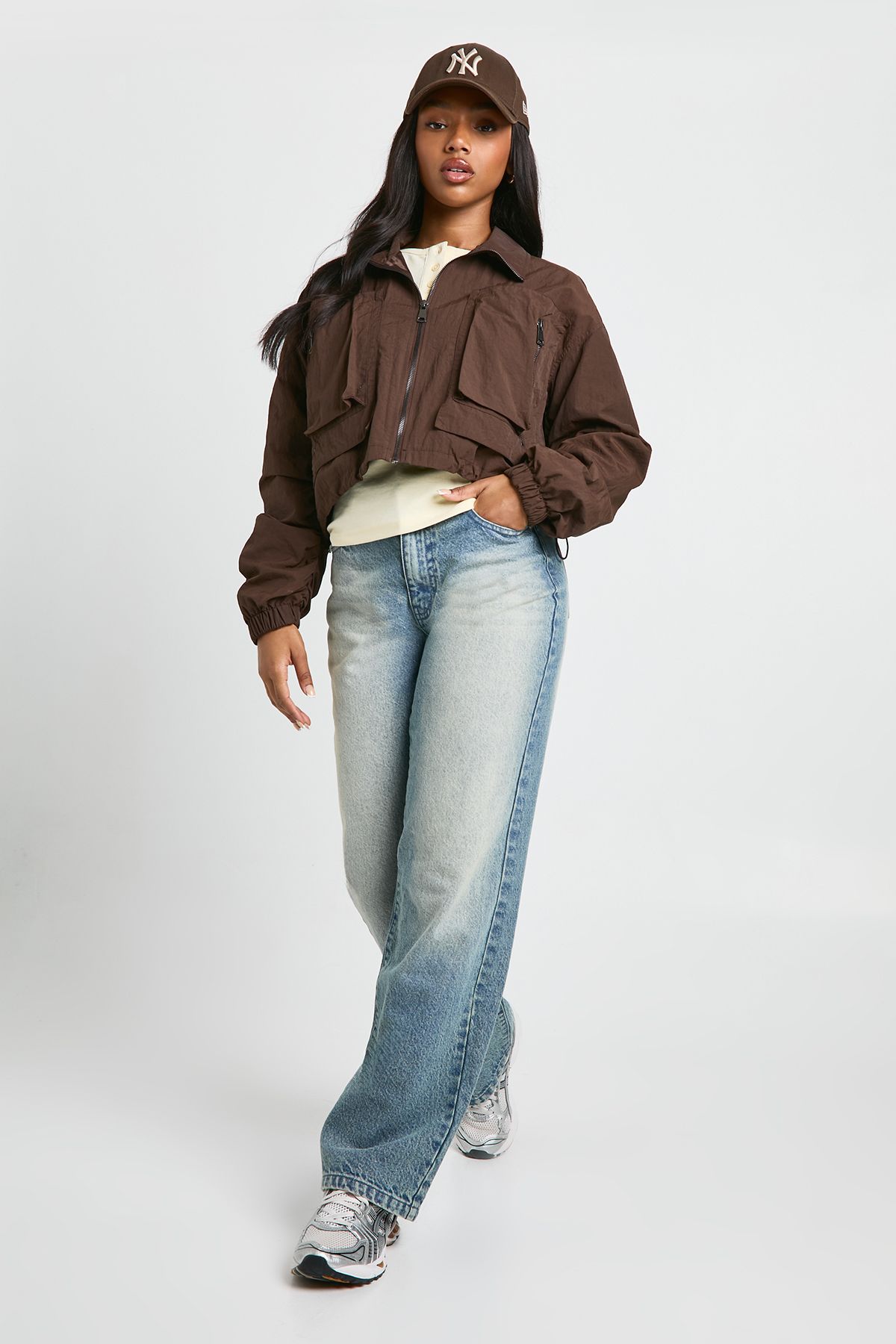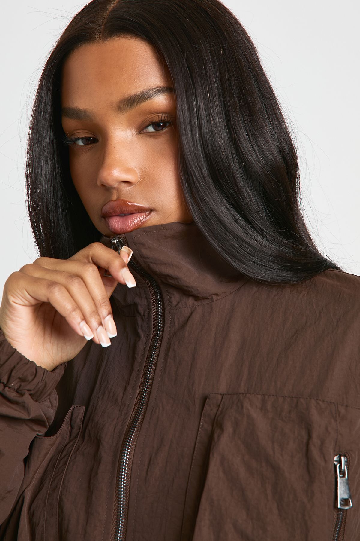 Funnel Neck Cropped Utility Jacket