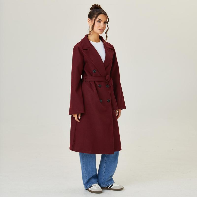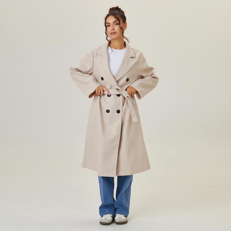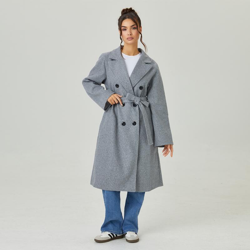 ·Details: Long sleeves, Double-breasted, Detachable waist belt, Functional side pockets, Notch lapel, With lined