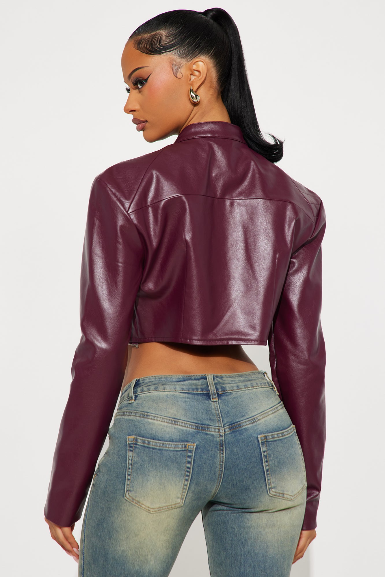 • Keep The Same Energy Bolero Moto Jacket - Burgundy