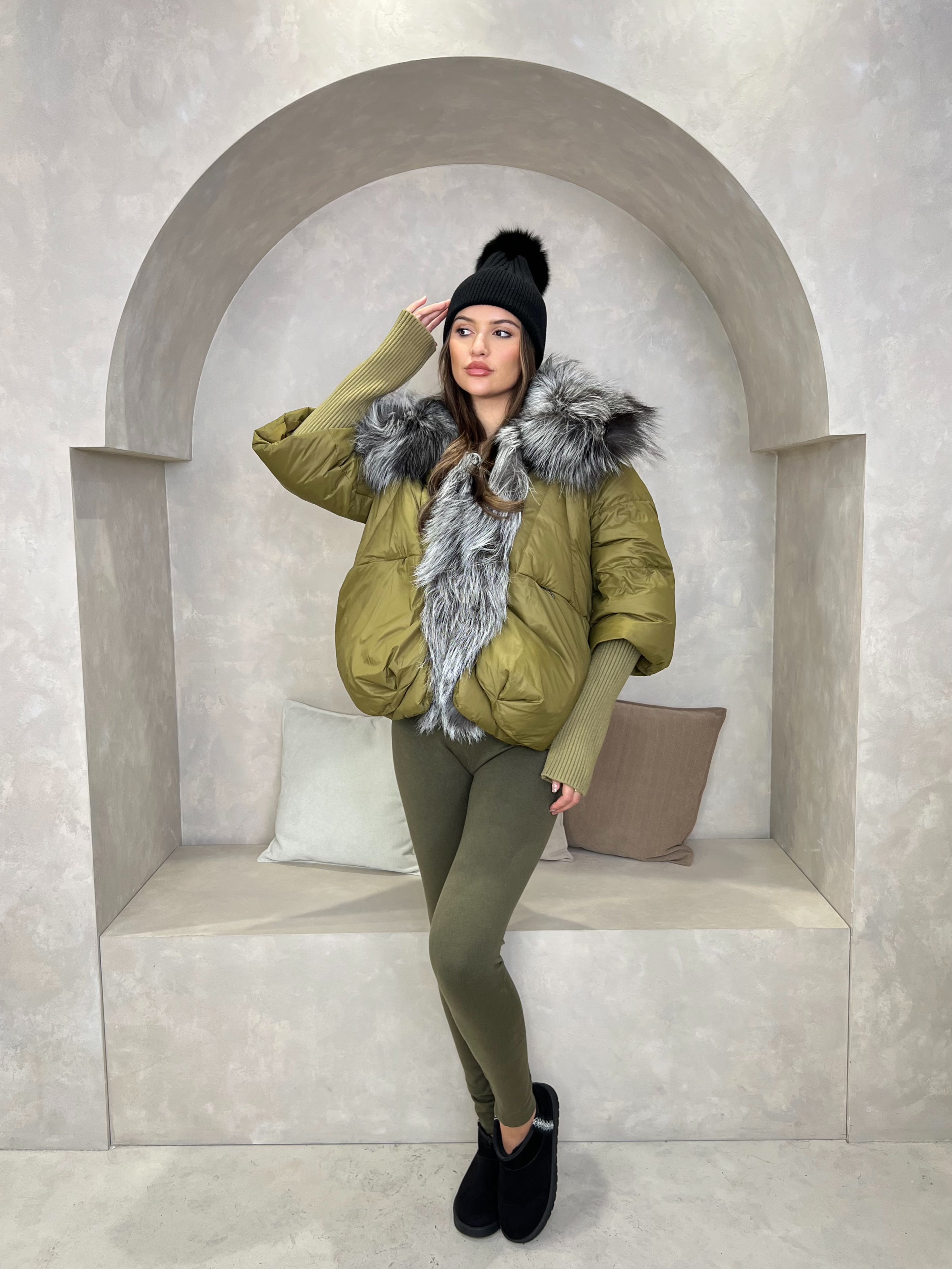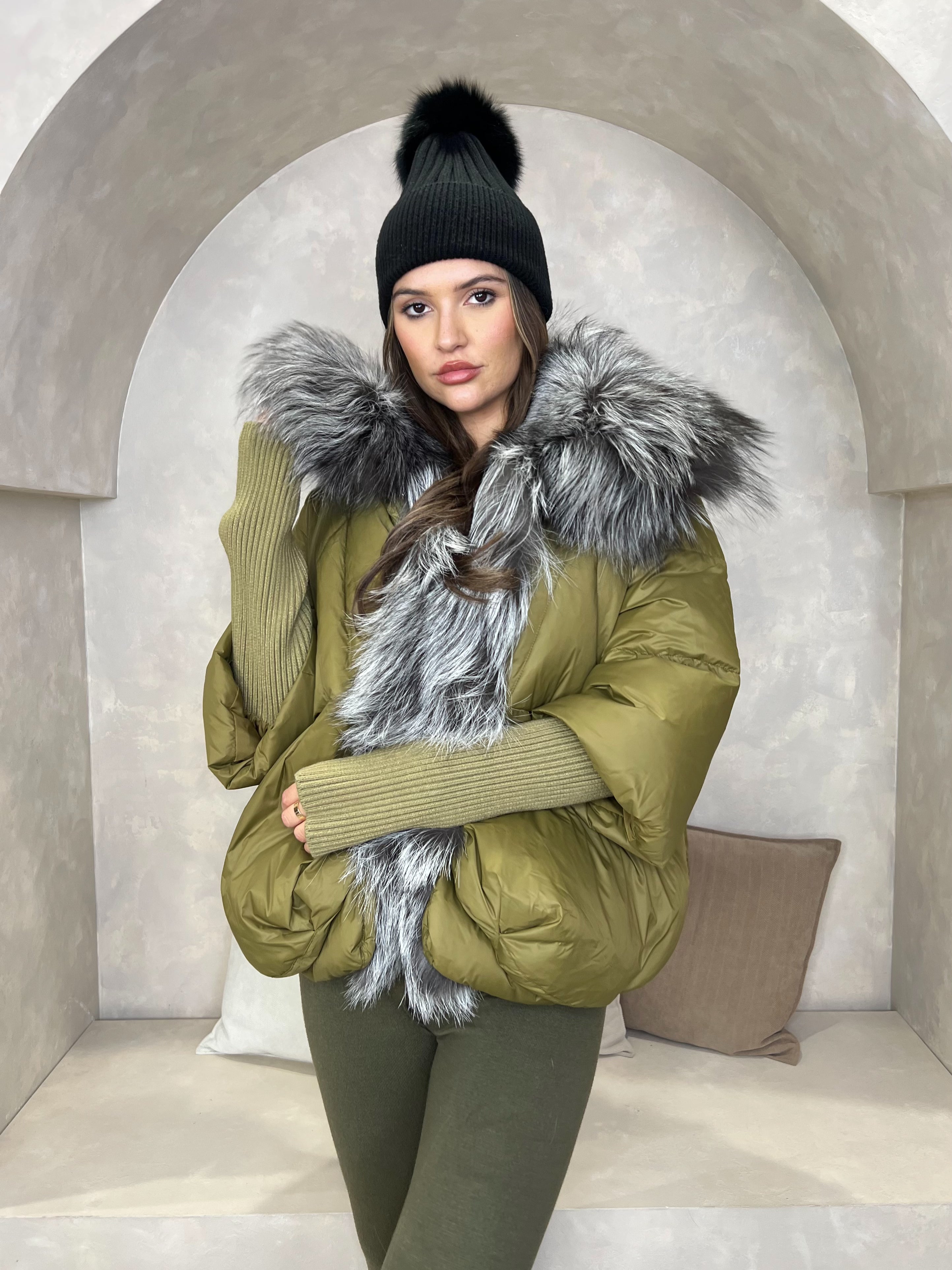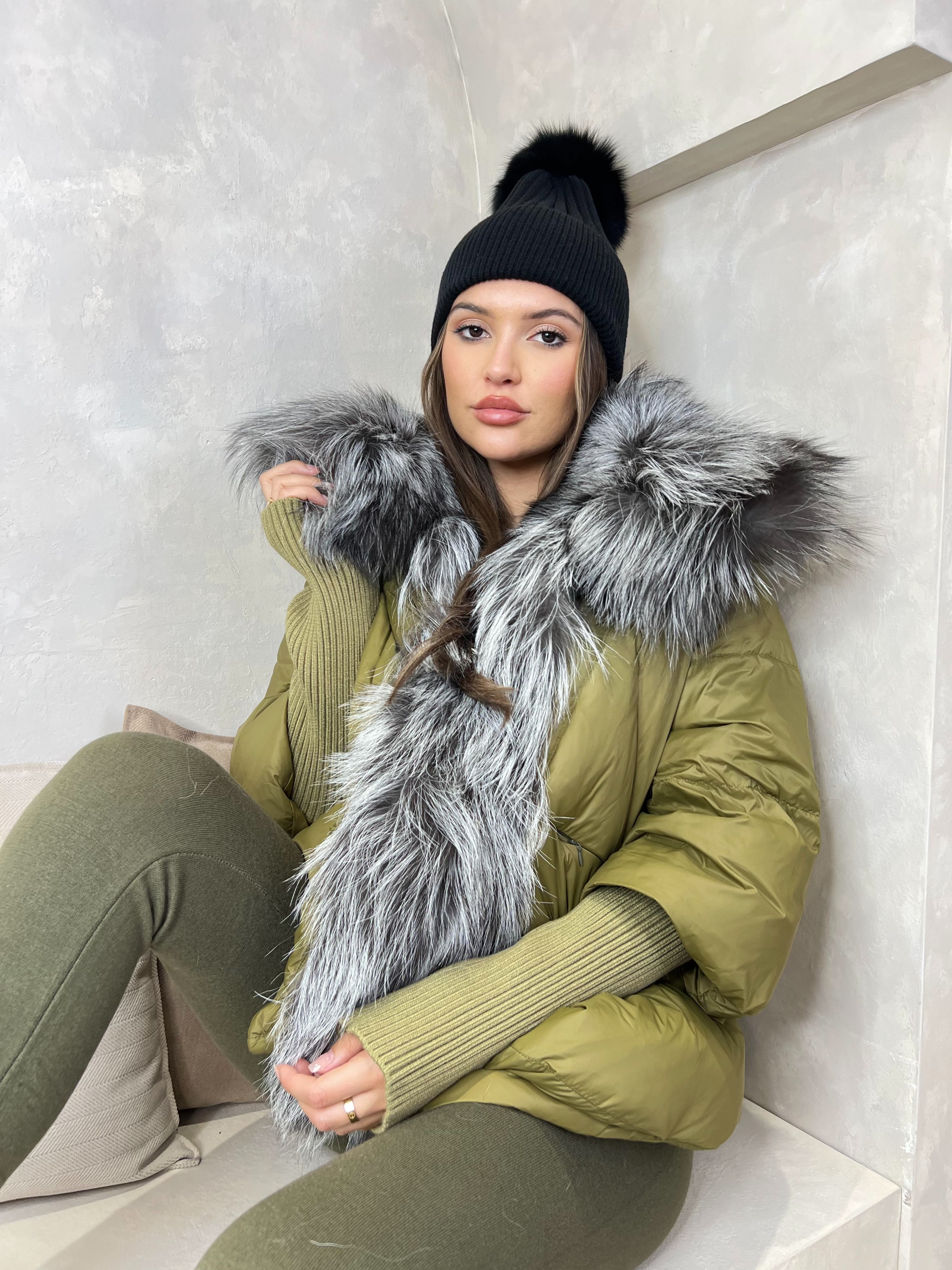 - Shell: 100% Polyester, Filling: 90% Goose Down, Fur: 100% Real Fur