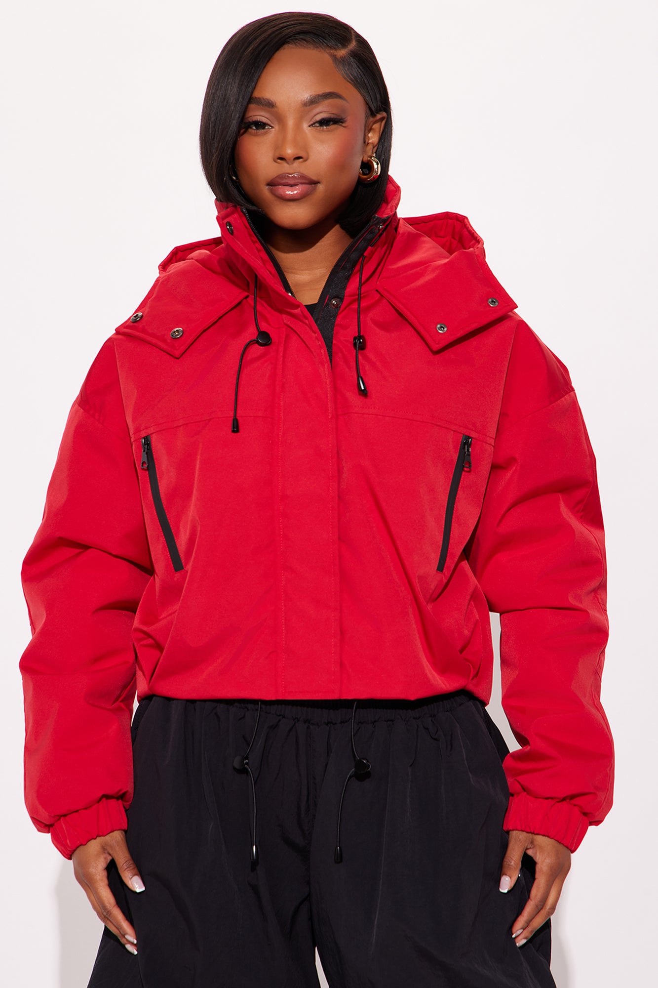 Available In Black, Olive And Tomato Red.WindbreakerCollarHoodLong SleeveZipper ClosureSnap DetailToggle WaistFully LinedShell :100% PolyesterLining: 100% PolyesterFilling: 100% PolyesterImported
