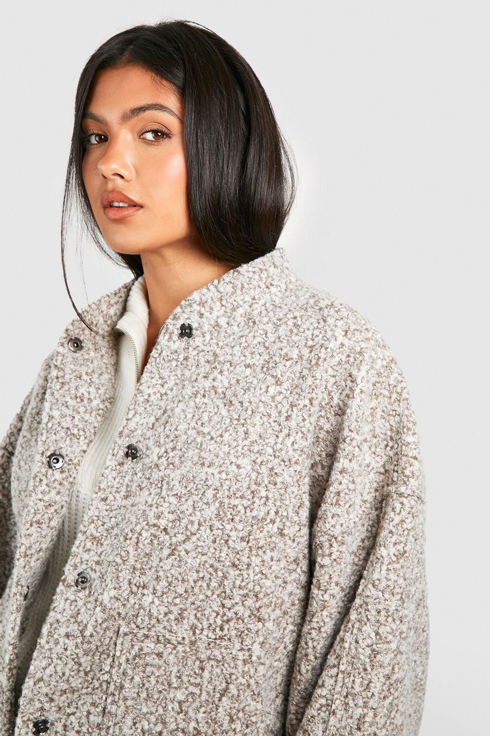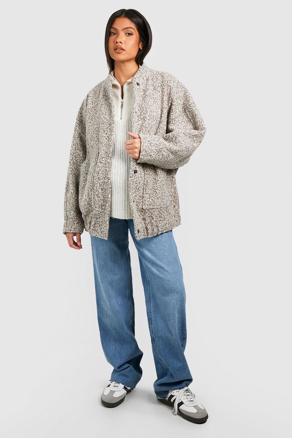 - Versatile maternity piece that grows with you throughout pregnancy This maternity bomber jacket combines comfort and contemporary style for the fashion-forward mum-to-be. The oversized fit allows plenty of room for your changing shape whilst maintaining a trendy silhouette that doesn't compromise on style. As seen on our model, pair with wide-leg jeans and trainers for an effortlessly cool weekend look, or layer over a simple tee and leggings for quick coffee runs. The textured fabric adds dimension to your outfit whilst the classic bomber shape ensures this piece will remain a wardrobe staple throughout your pregnancy and beyond. Perfect for casual outings, family gatherings or simply elevating your everyday maternity wardrobe, this Boohoo jacket offers the ideal balance of practicality and on-trend appeal for the modern expectant mother.