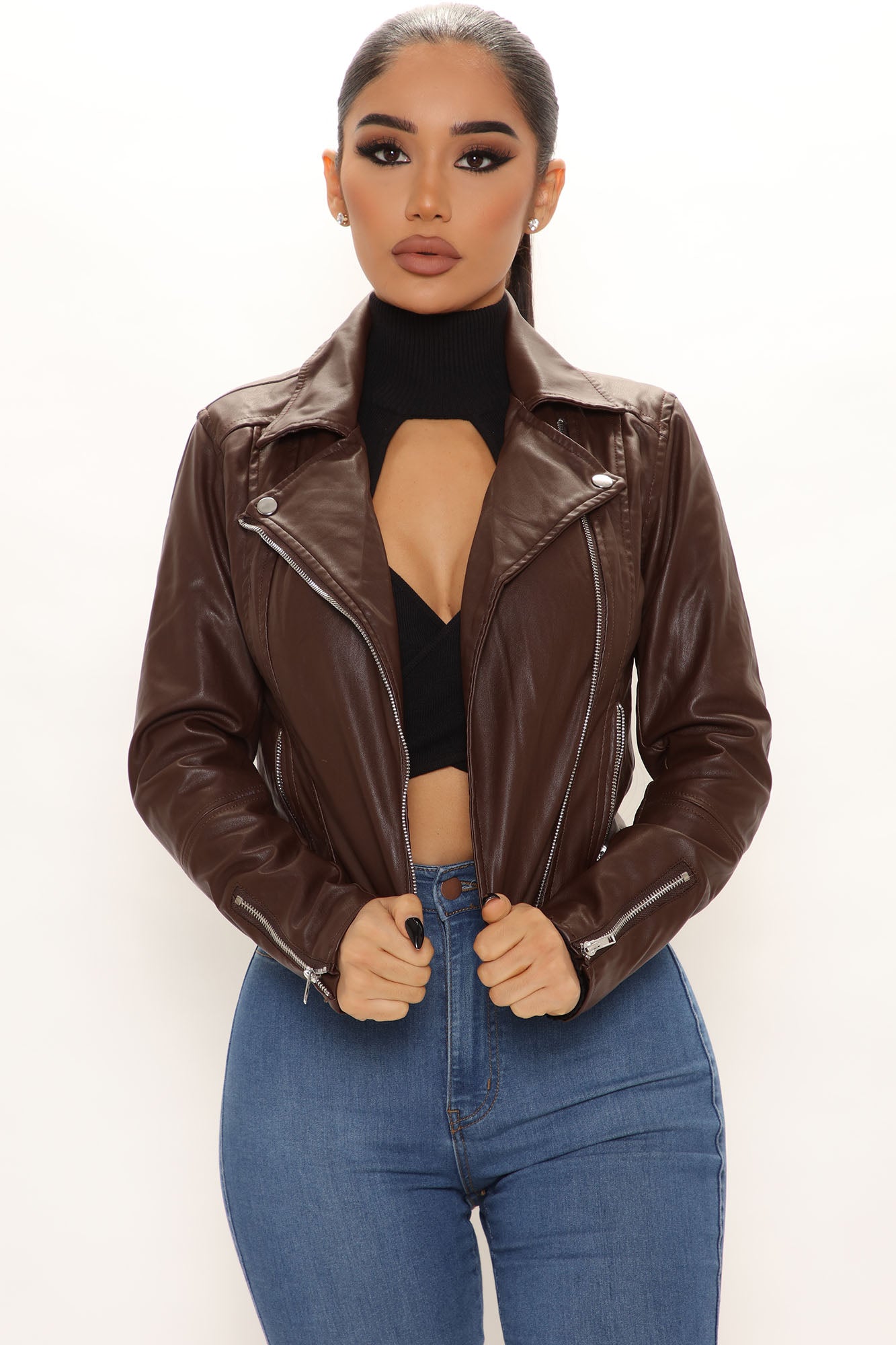 Available In Black And Brown.PU Moto JacketZip FrontZip PocketsShell:100% Polyester Coated with PolyurethaneLining:100% PolyesterImported