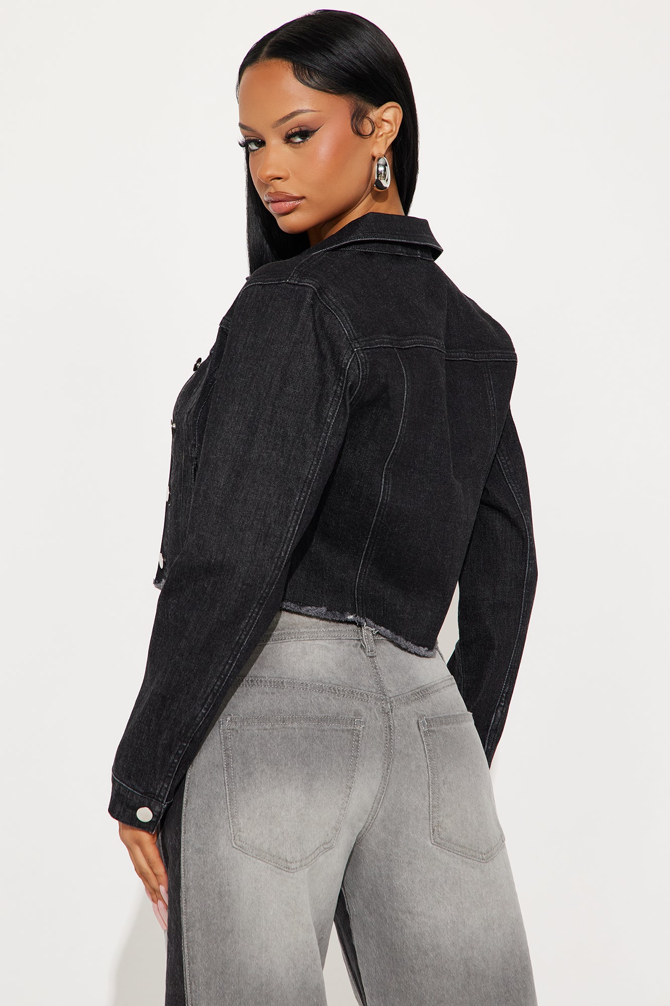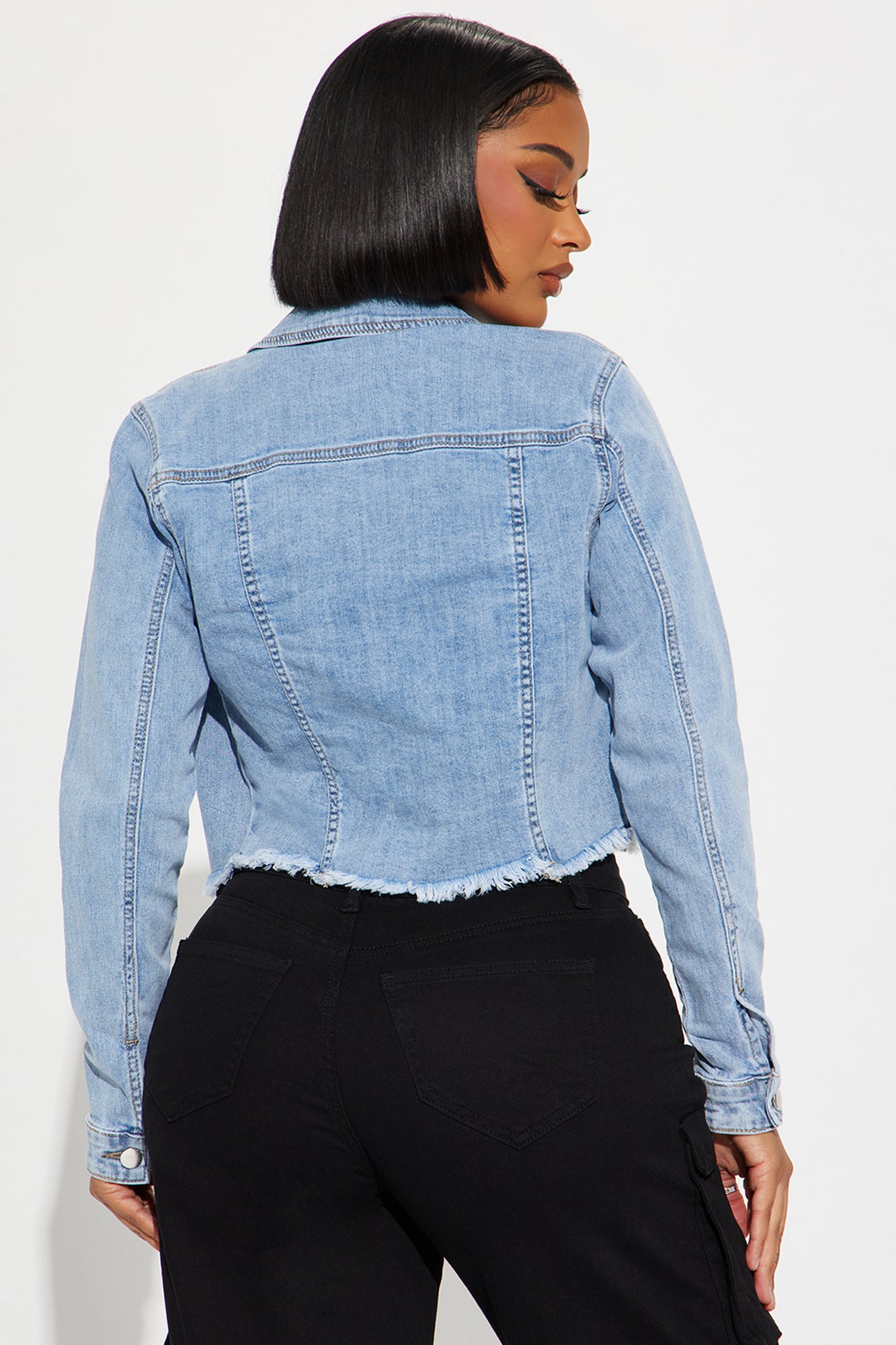Available In Black Wash And Light Wash.Cropped Denim JacketRaw HemFront PocketsChest PocketsButton ClosureMedium StretchDisclaimer: Due To The Specialized Wash, Each Garment Is Unique.67% Cotton 25% Polyester 6% Rayon 2% SpandexImported
