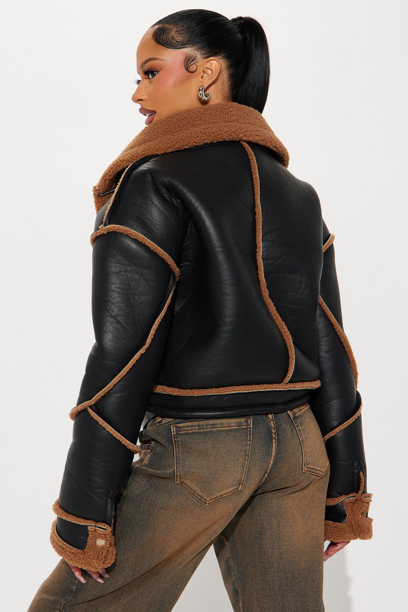 Available In Black.Shearling JacketFaux LeatherFull ZipLong SleeveFront PocketsDrawstringShell: 100% PolyurethaneLining: 100% PolyesterImported