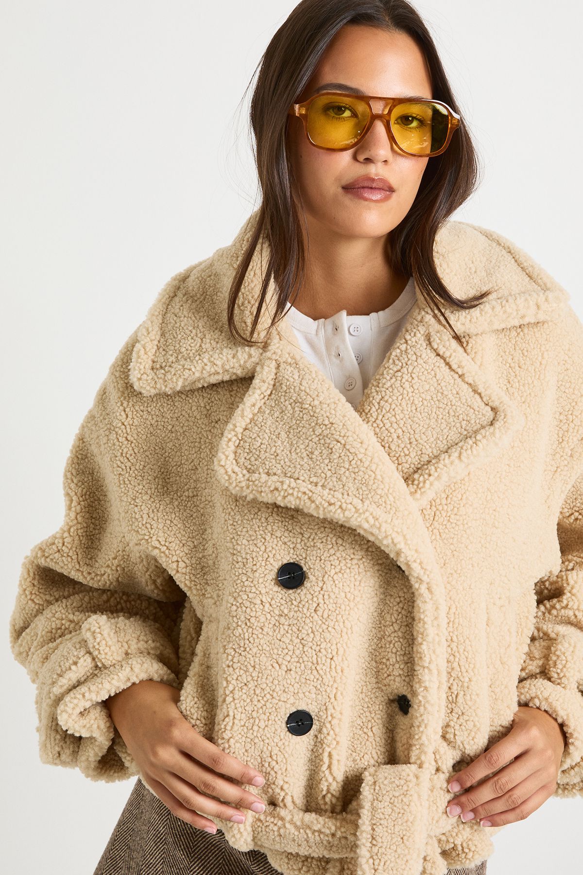 • Dropped shoulder design with roomy sleeves for effortless movement Wrap up in style with this statement Oversized Collar Belted Teddy Jacket from Boohoo. The generous proportions and sumptuous texture create a contemporary silhouette that's both on-trend and wonderfully comfortable. Style with tweed shorts and a simple crop top for casual daytime outings, or throw over straight-leg jeans and trainers for weekend coffee dates. The adjustable belt allows you to customise your look-wear it cinched for definition or open for a more relaxed feel. Perfect for family gatherings or casual meet-ups with friends, this jacket works brilliantly with boots for a coordinated autumn ensemble. The versatile design makes it an ideal transitional piece that will see you through multiple seasons, easily dressed up or down depending on the occasion. A true wardrobe hero that combines practicality with fashion-forward styling.