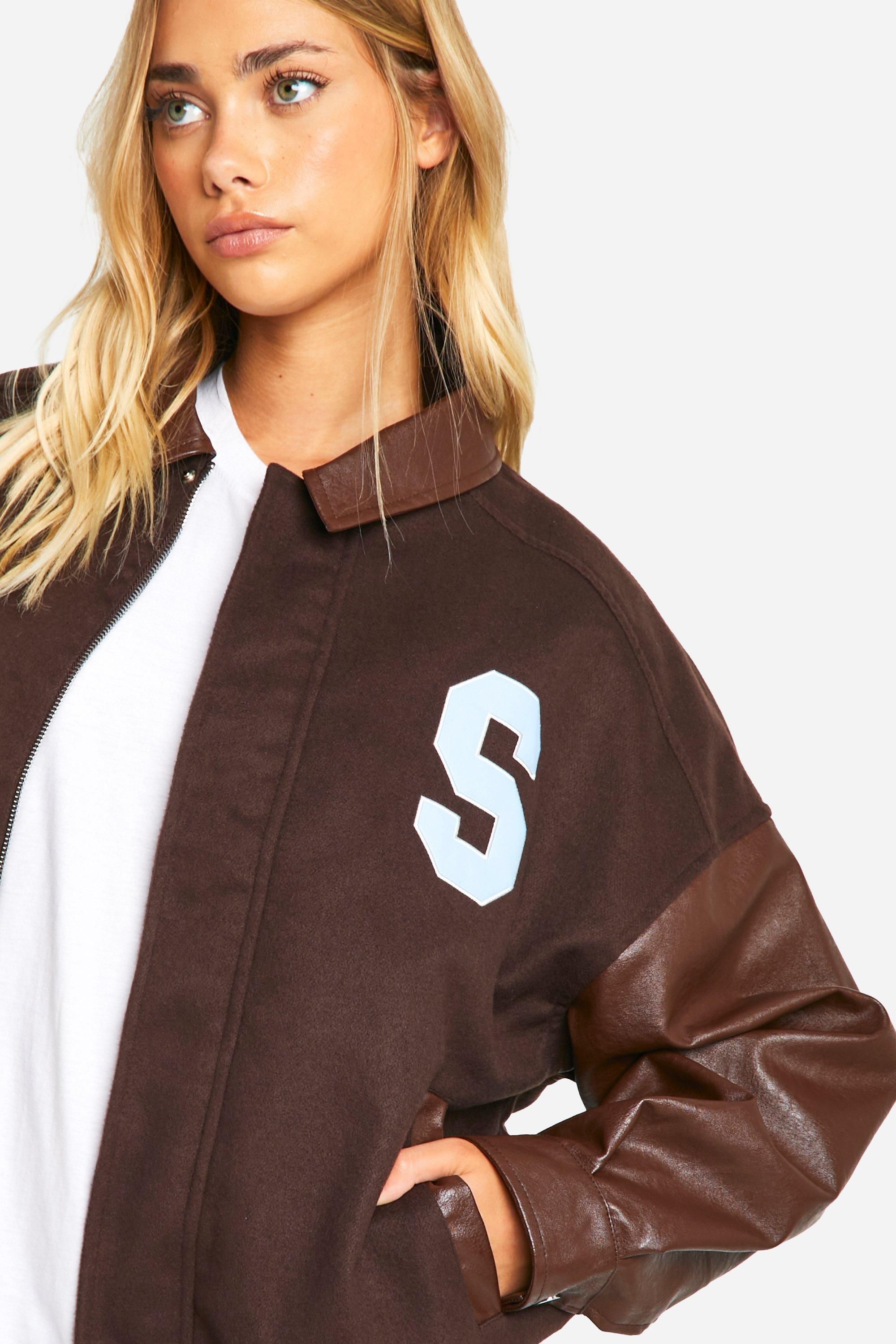 • Oversized bomber jacket with contrasting faux leather sleeves