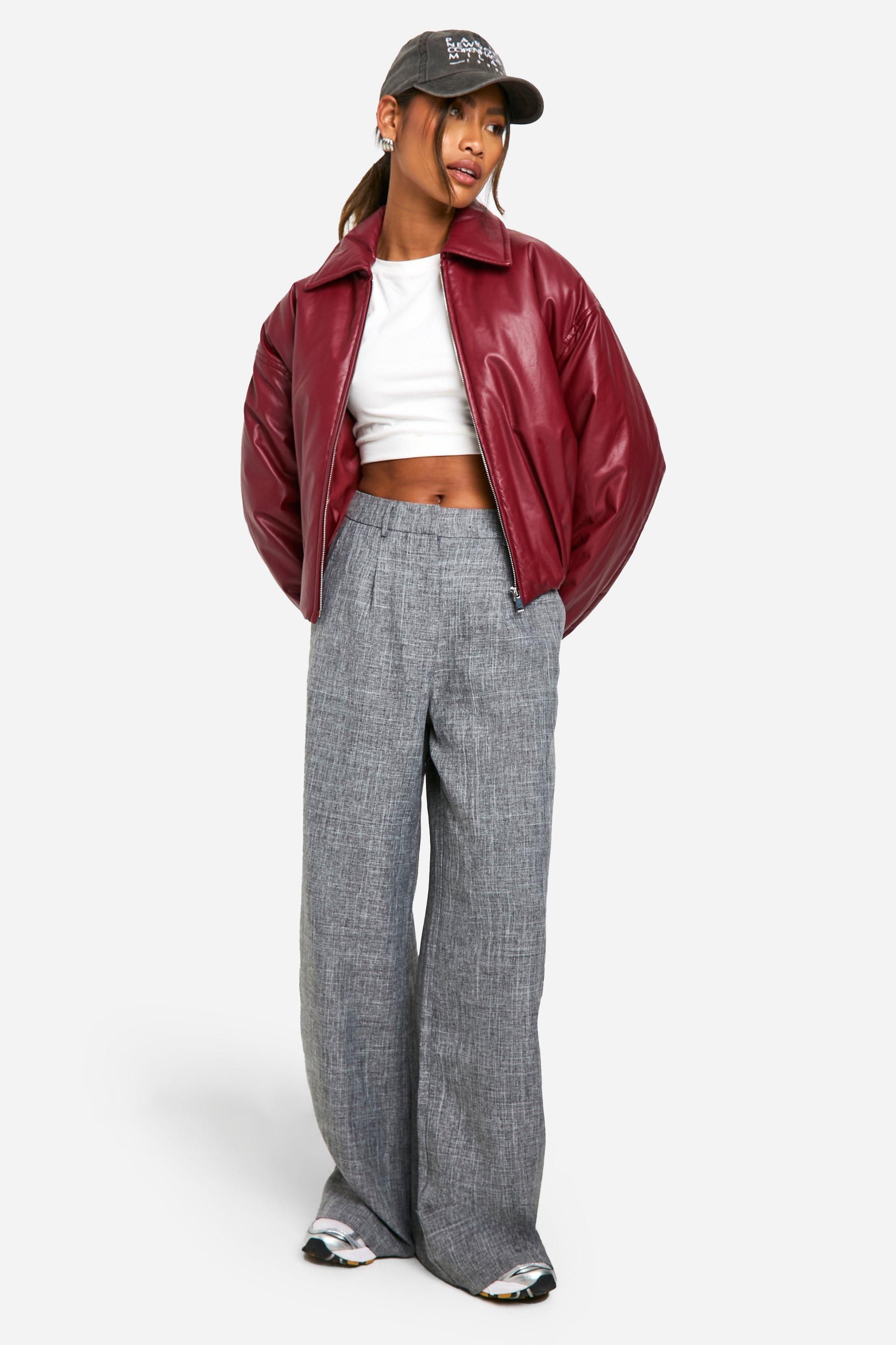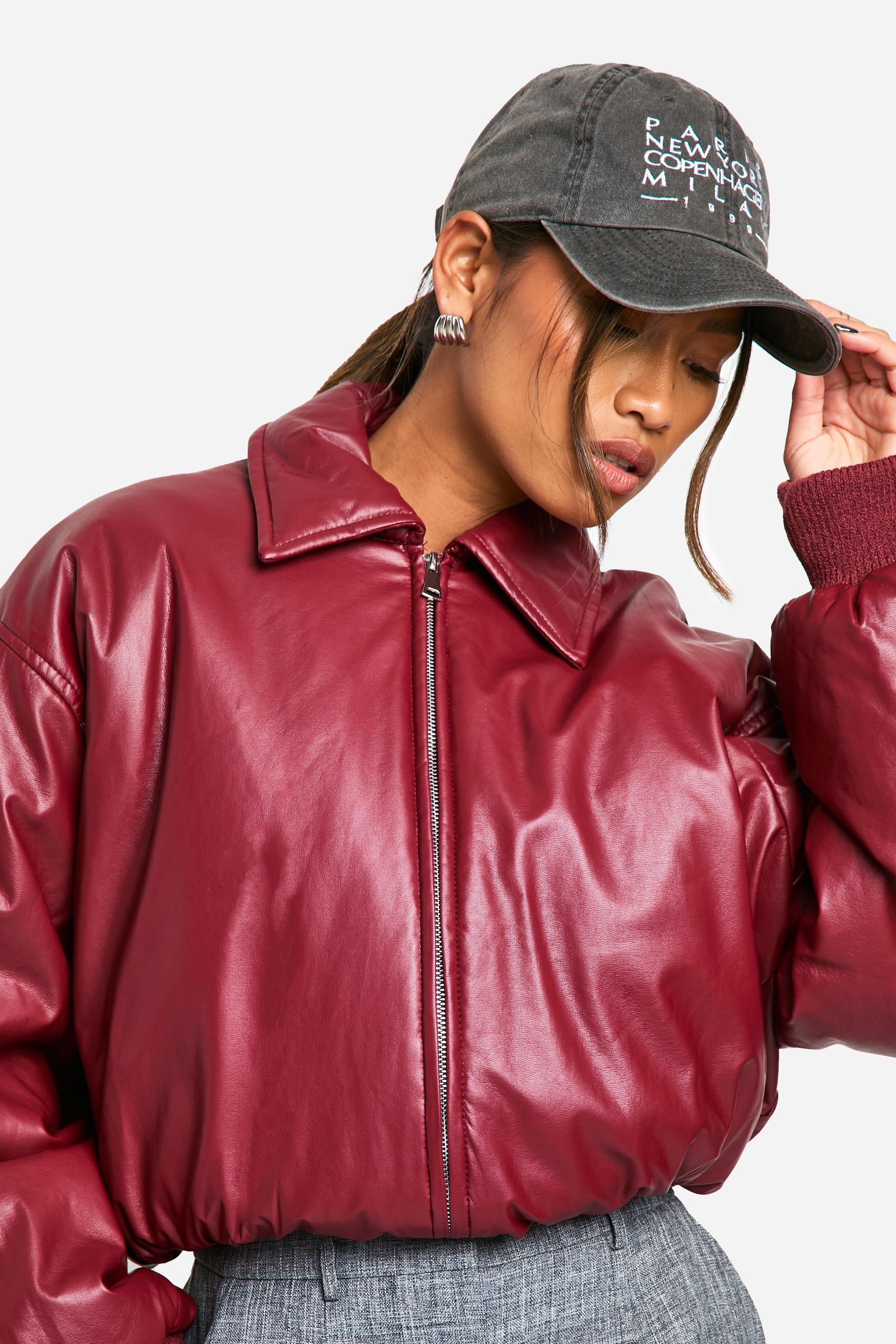 - Padded bomber jacket with a sleek faux leather finish