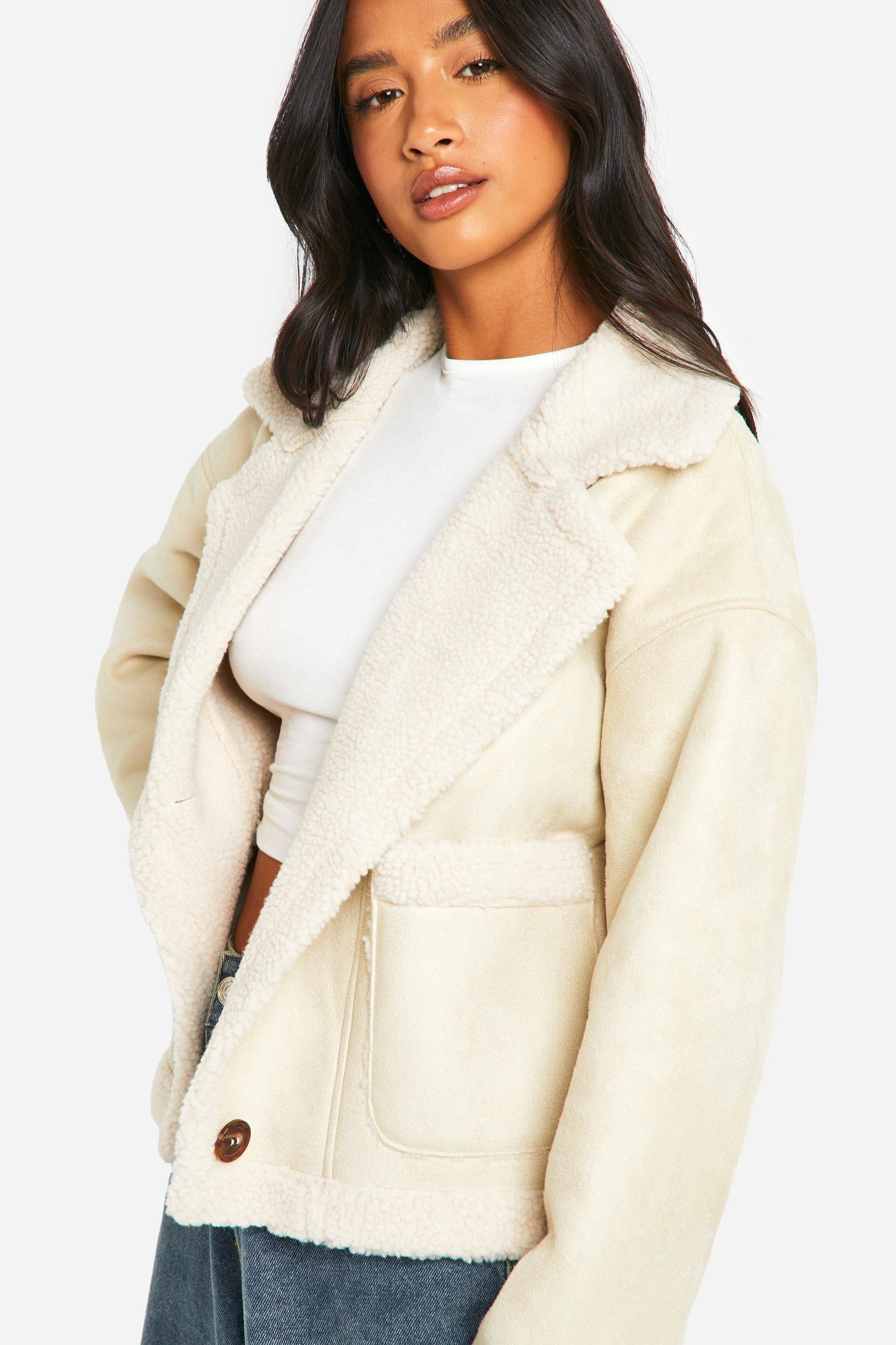 Petite Borg Lined Faux Suede Jacket