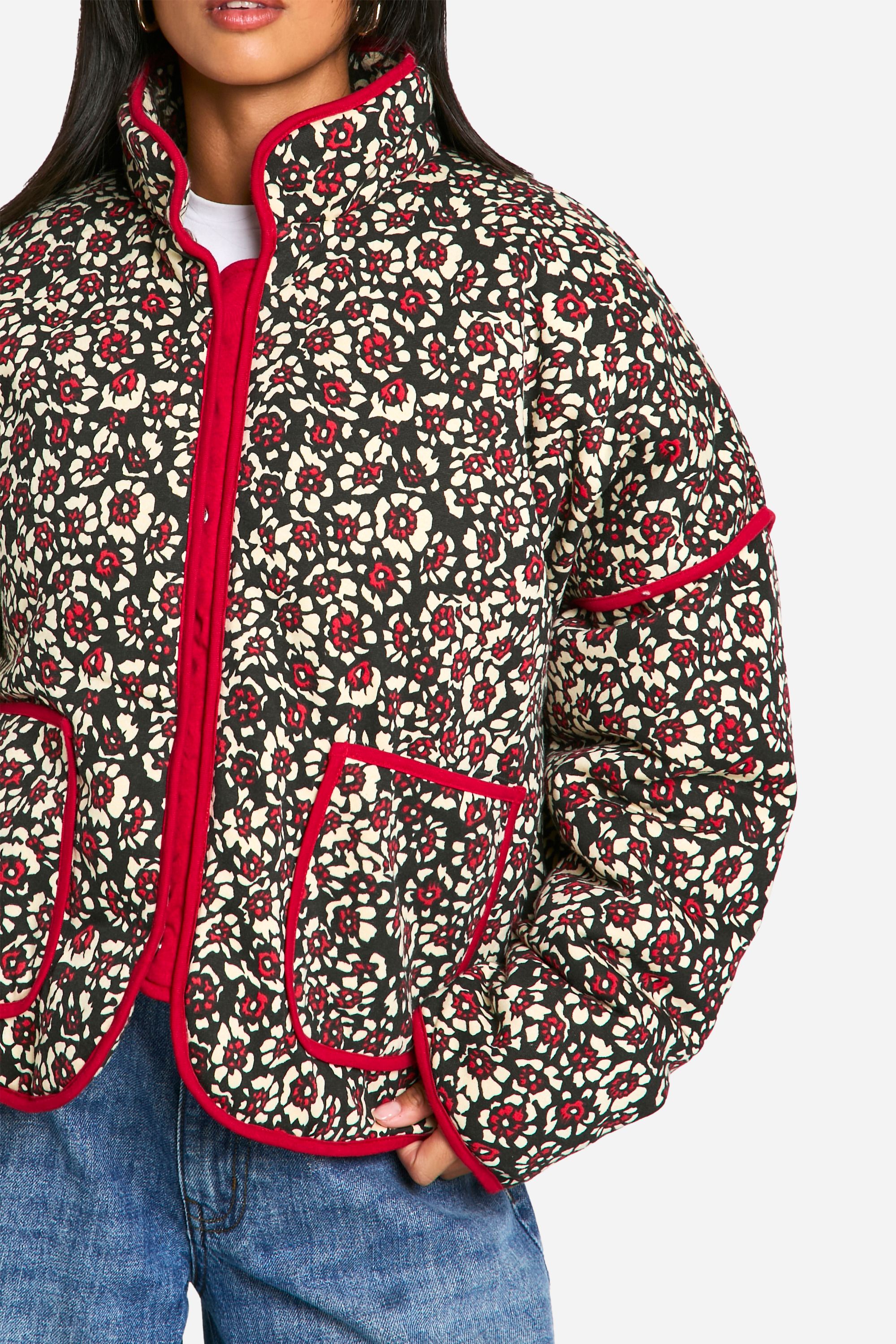 - Eye-catching floral print quilted jacket
