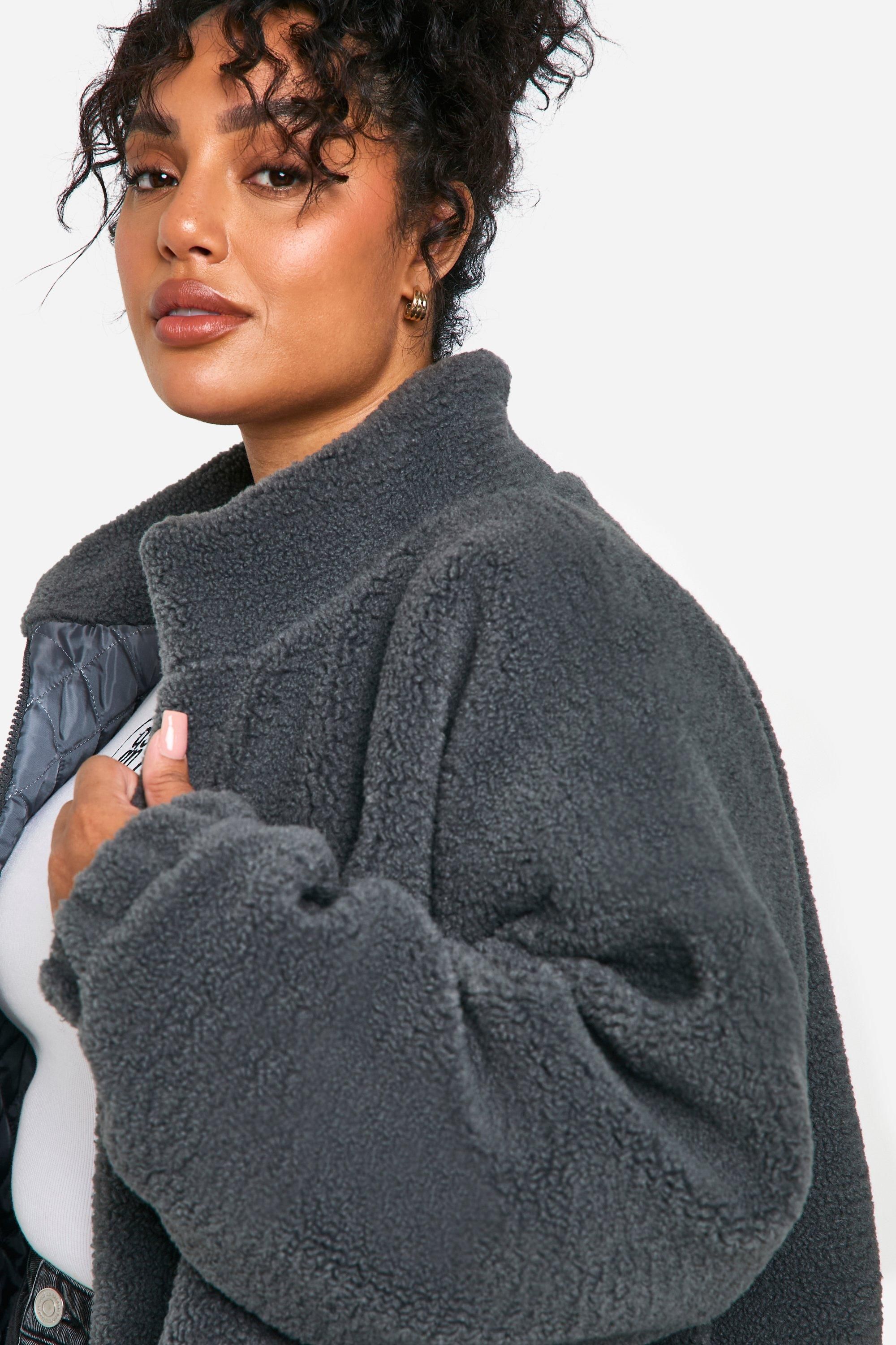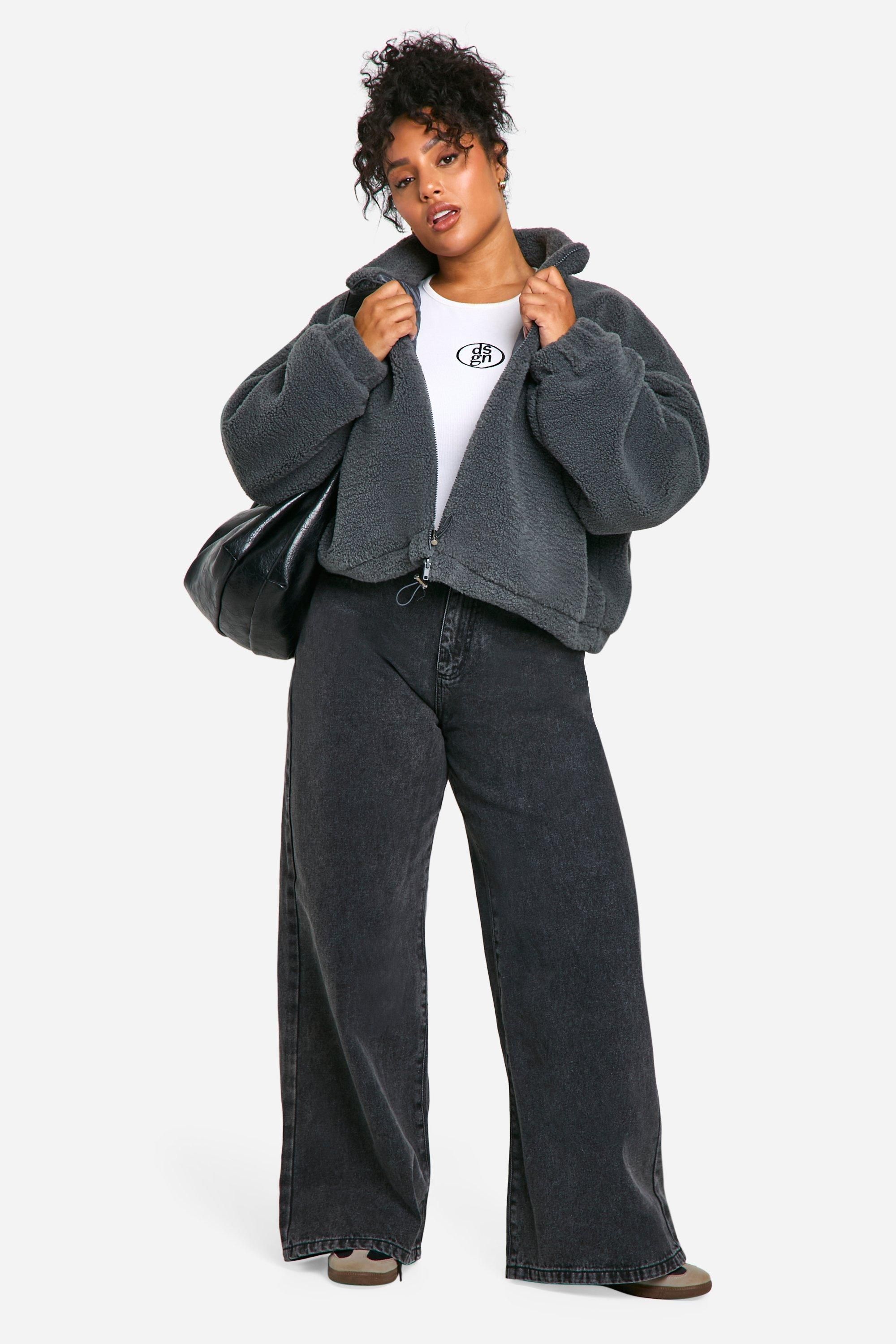 - Embrace the latest trend with this plus-size kastige Bomberjacke, a must-have addition to your casual wardrobe. The plush teddy fabric offers unparalleled comfort, perfect for those chilly days when you need an extra layer of warmth. Its boxy, oversized fit not only provides a fashionable silhouette but also allows for easy layering over your favourite outfits. Style it with wide-leg jeans and trainers for a relaxed weekend look, or throw it over a midi dress and ankle boots for a trendy brunch ensemble. The versatile design makes it ideal for family gatherings, casual outings with friends, or even those laid-back days at the office. With its timeless appeal and cosy feel, this bomber jacket is set to become your go-to piece for effortless, on-trend styling throughout the seasons.
