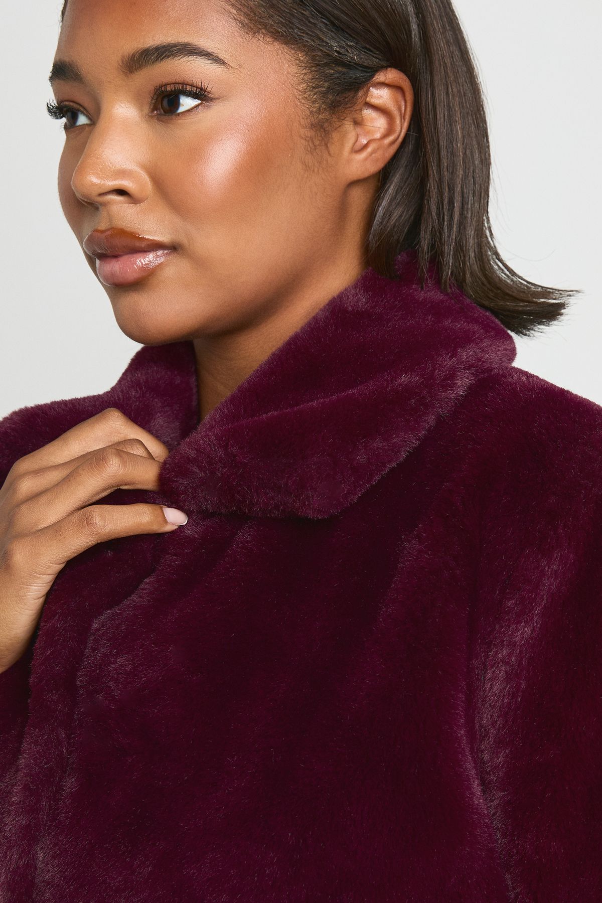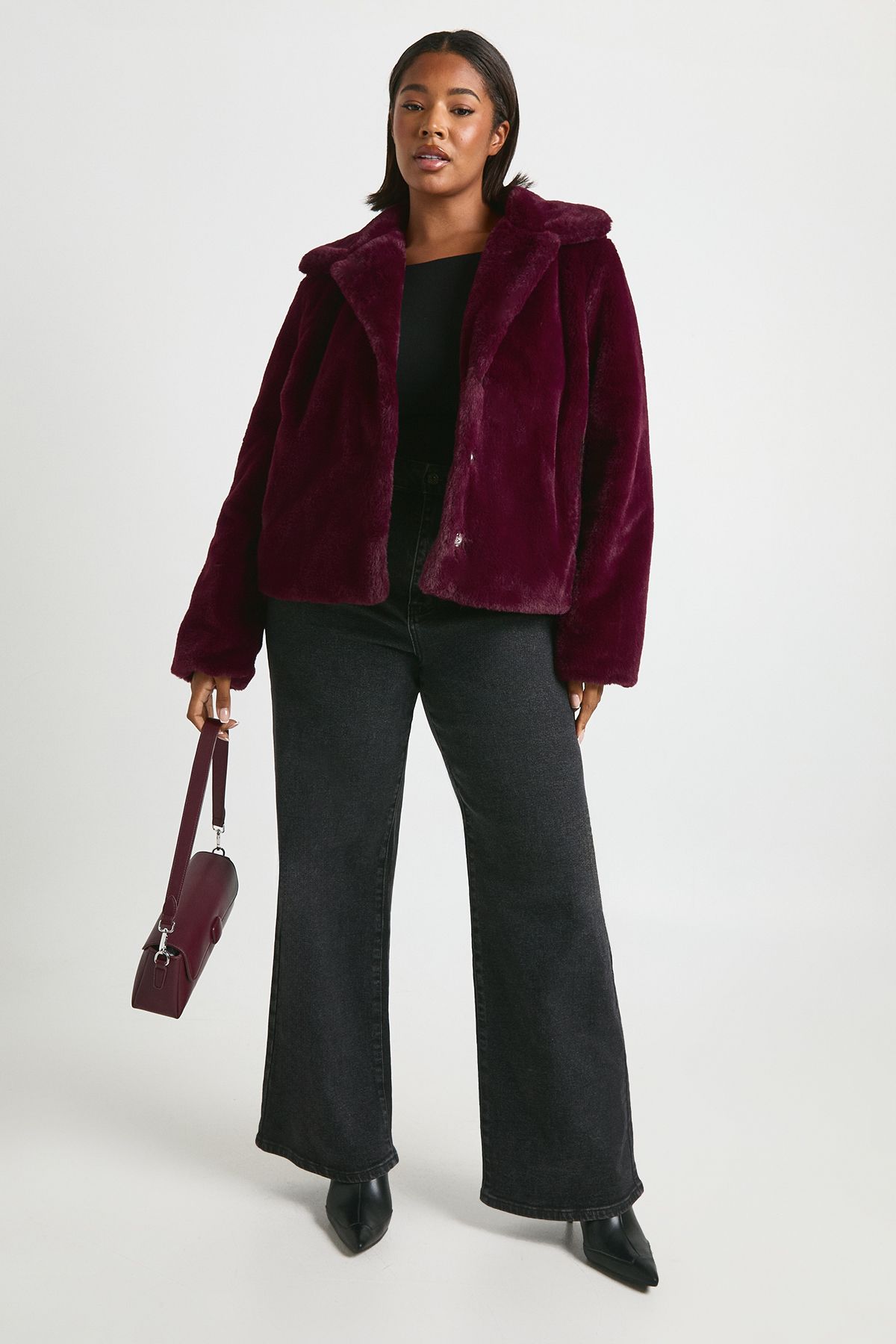 Plus Collared Faux Fur Jacket