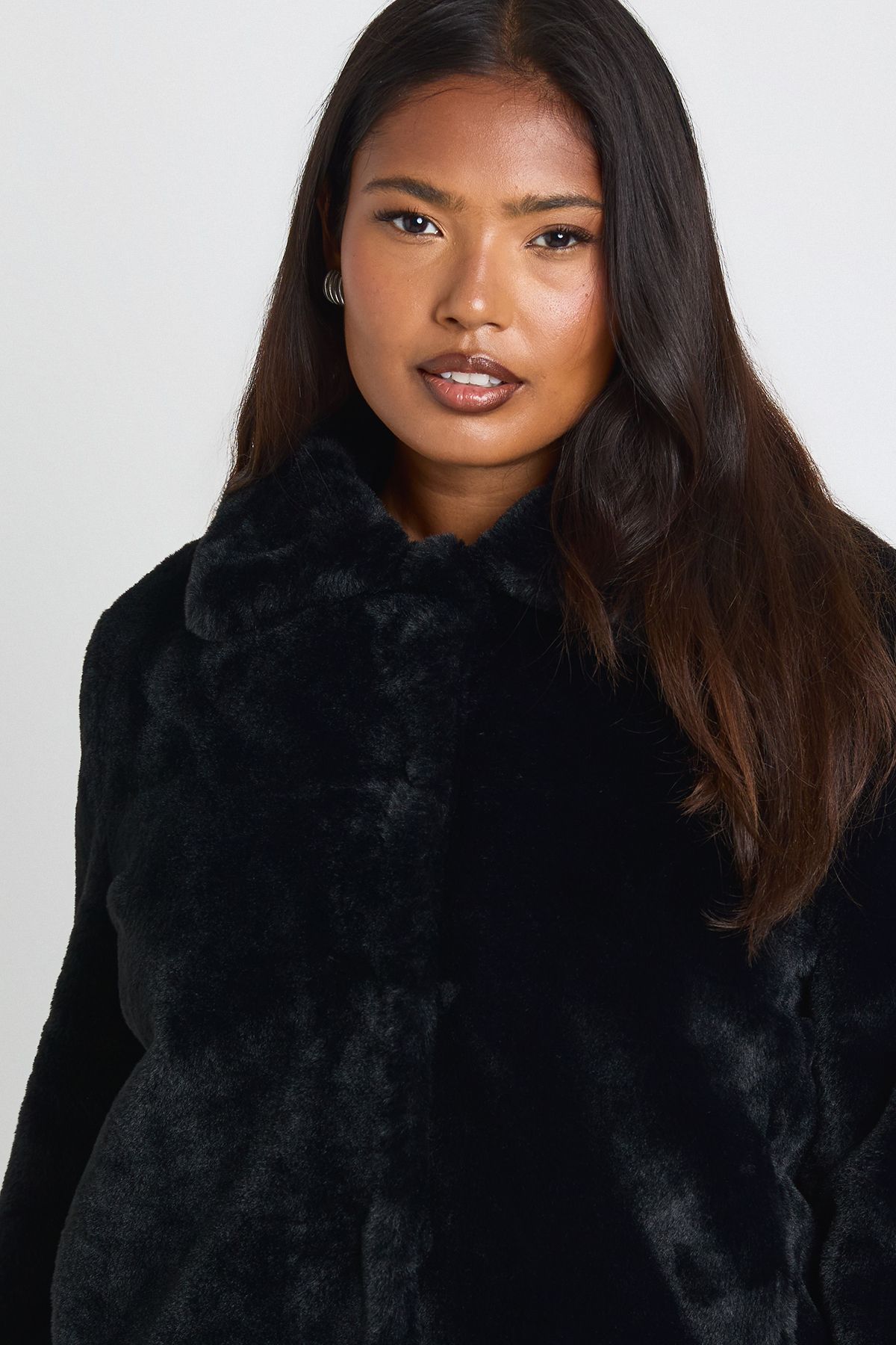 Plus Collared Faux Fur Jacket