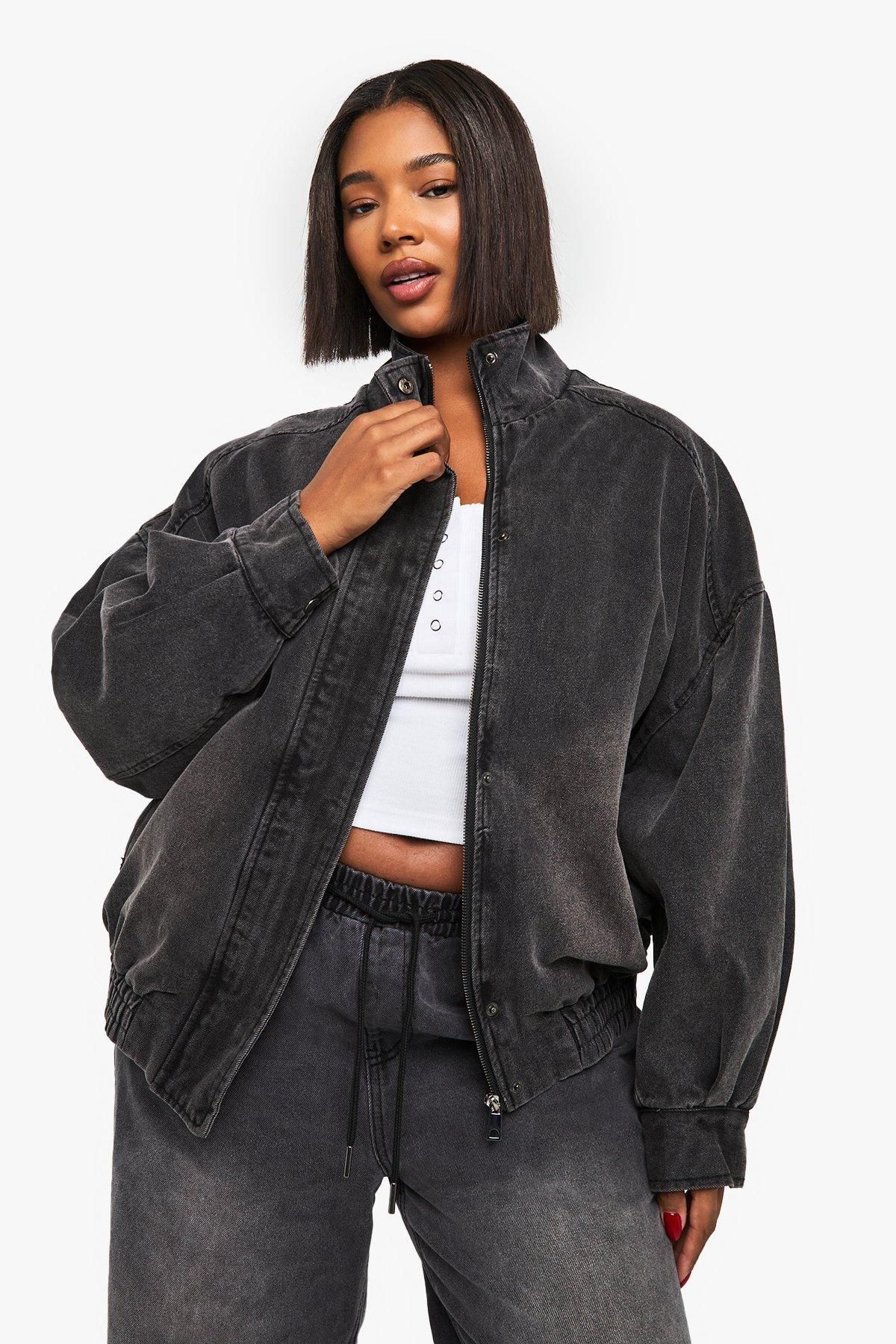 - Make a bold statement with this Plus Denim Oversized Bomber Jacket from Boohoo. The relaxed silhouette creates an effortlessly cool vibe whilst providing ample room for layering during cooler months. Style with a simple crop top and wide-leg trousers for a balanced contemporary look, or throw over a casual dress for an instant style upgrade. The versatile design transitions seamlessly from daytime outings to casual evening gatherings. Perfect for family get-togethers, weekend brunches or casual shopping trips with mates, this jacket adds an urban edge to any ensemble. Pair with trainers and your favourite jeans for an everyday look, or dress up with boots and statement jewellery for evening socials. This bomber jacket embodies Boohoo's commitment to inclusive fashion that doesn't compromise on trend-led style.