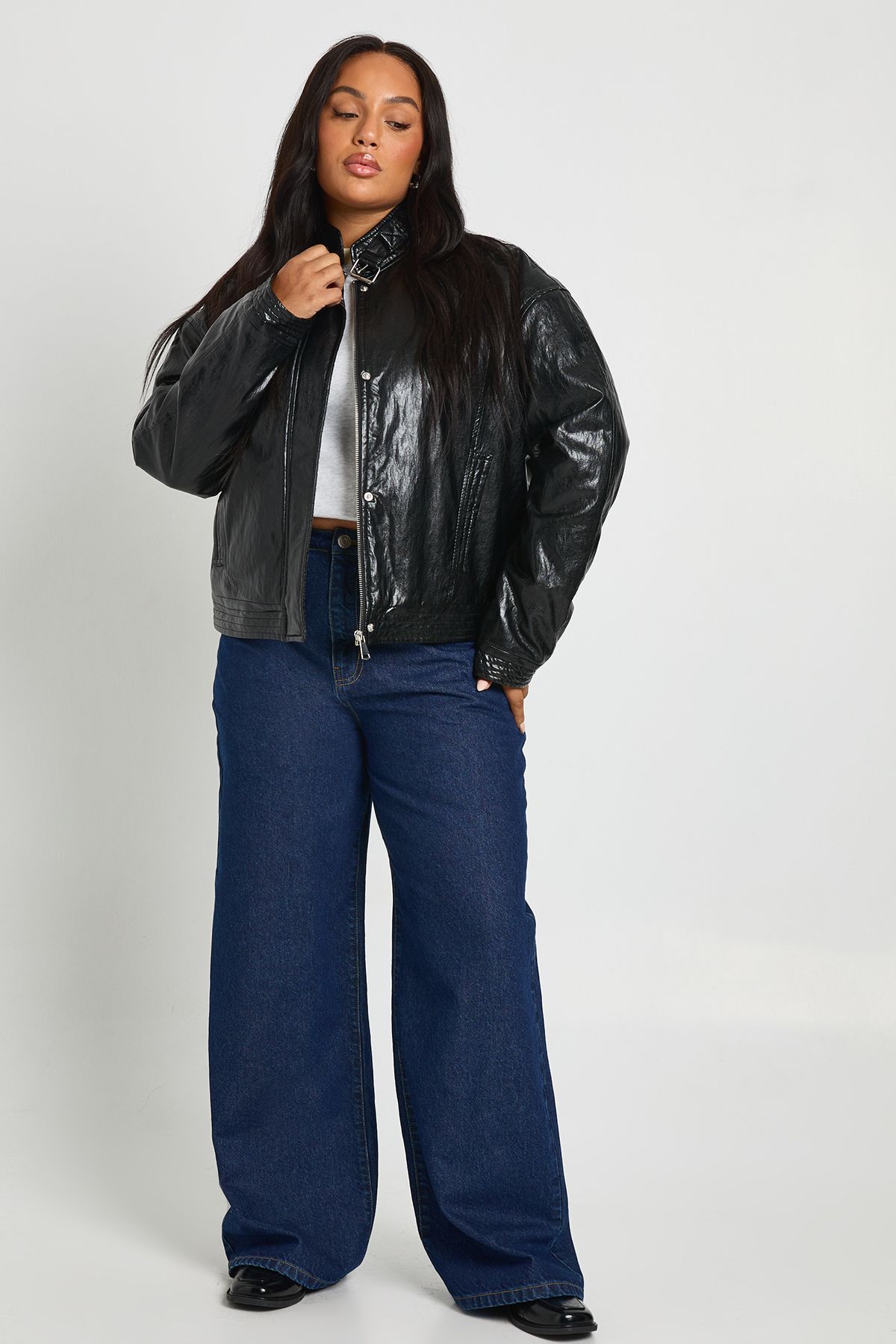 Plus Faux Leather Oversized Jacket