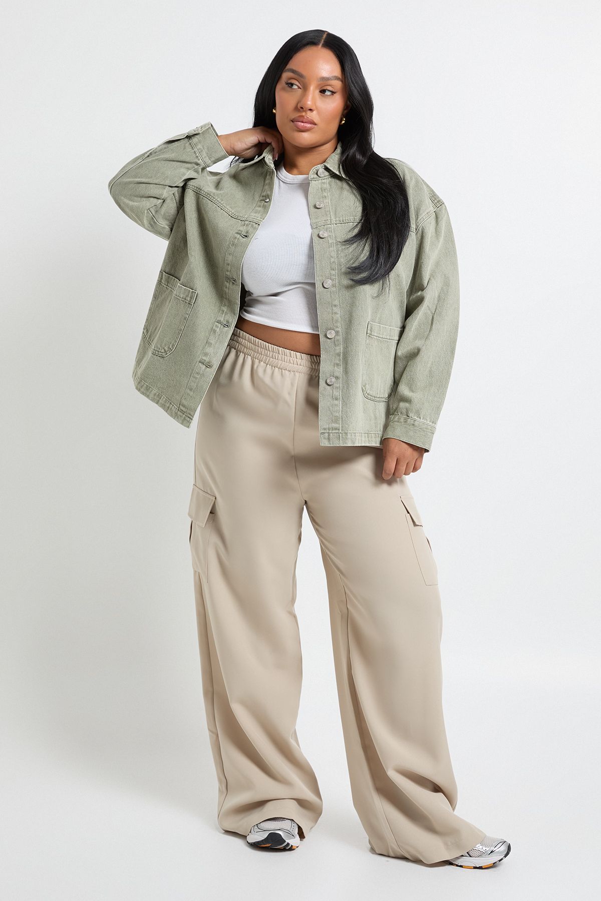 - This washed denim jacket offers the perfect balance of casual cool and practical comfort. The relaxed, oversized silhouette creates a laid-back vibe that works brilliantly for everyday wear. Style as seen with the matching denim mini skirt for an on-trend co-ord ensemble that's perfect for weekend brunches or casual meet-ups with friends. For a more relaxed approach, pair with white trainers and ankle socks as shown, adding a simple white vest underneath. The versatile nature of this jacket means it also works wonderfully with leggings, jeans or over a casual dress. For transitional weather, layer over a hoodie with your favourite joggers for an effortlessly cool off-duty look. The washed finish adds character to this wardrobe staple, ensuring it becomes more uniquely yours with every wear.
