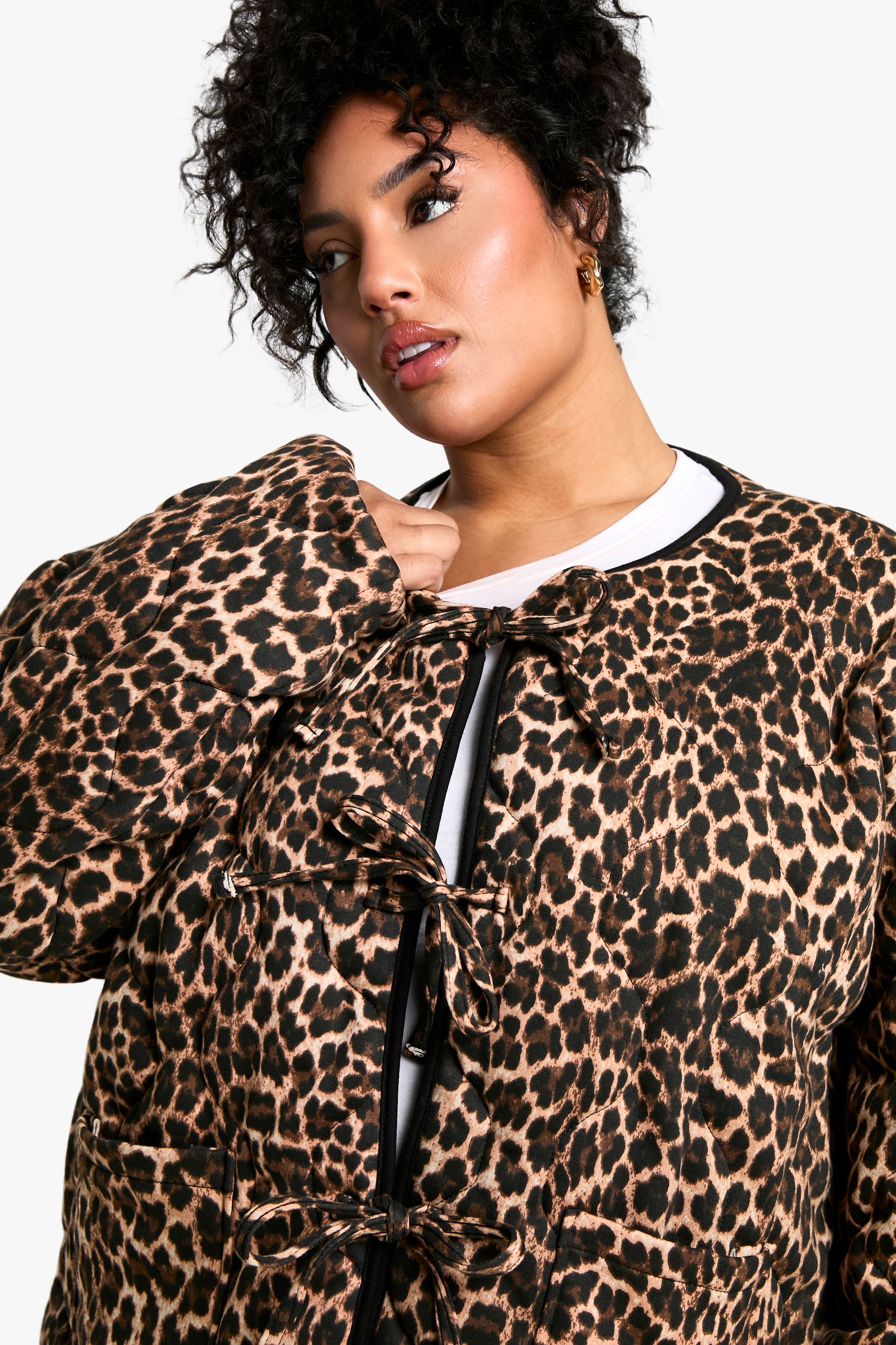 Plus Leopard Tie Detail Padded Jacket