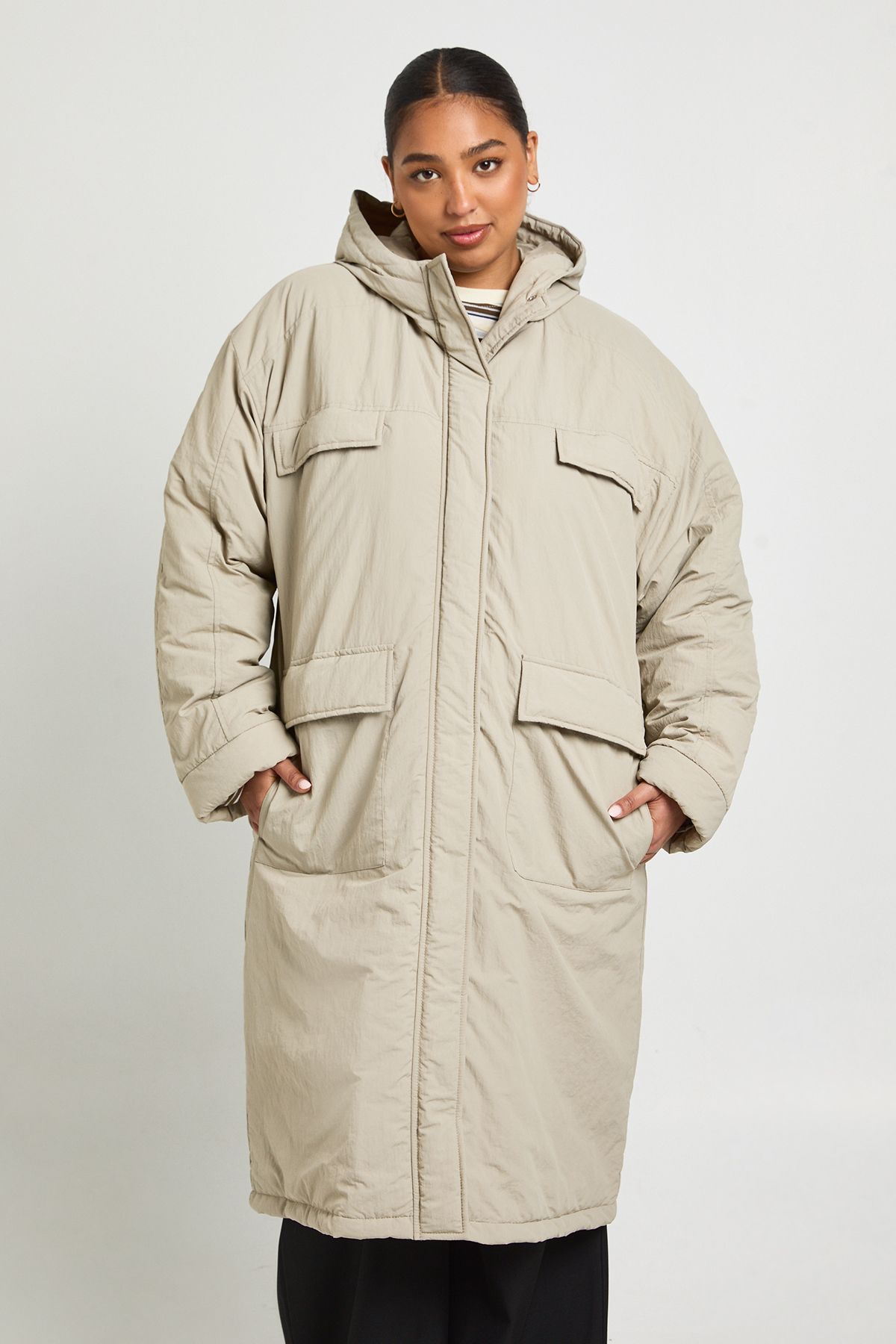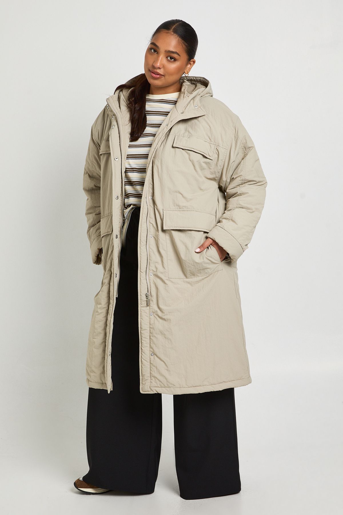 - This long line parka jacket is the ultimate casual outerwear piece for your everyday wardrobe. The relaxed, roomy fit makes it perfect for layering over jumpers and hoodies when temperatures drop, while the practical hood and substantial padding provide reliable protection against British weather. Style as shown with a striped top and wide-leg trousers for an effortlessly cool weekend look, or pair with your favourite jeans and trainers for casual family gatherings. The versatile design works brilliantly for school runs, weekend shopping trips, or casual coffee dates. Its generous length offers extra coverage and warmth, making it an essential companion for autumn through winter. The simple, unfussy design ensures this parka will remain a wardrobe staple for seasons to come, adapting to your personal style with ease.