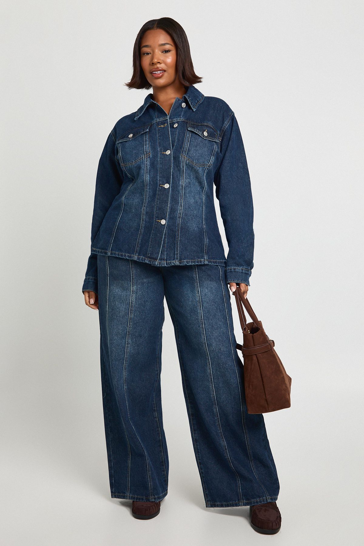 - This Plus Seam Detail Denim Jacket is the perfect casual staple for your wardrobe. The thoughtfully placed seams create a figure-enhancing shape that works brilliantly for curvy silhouettes. Style it as seen with wide-leg trousers for a balanced, contemporary look that's perfect for family gatherings or weekend brunches. For cooler days, layer over a simple tee and pair with your favourite jeans for an effortless double denim ensemble. The versatile design makes it ideal for transitional weather - throw it over a floral dress with trainers for a casual daytime look or team with a statement top and trousers for evening drinks. This Boohoo jacket offers the perfect blend of classic style and modern detailing, making it a wardrobe essential that will serve you season after season.