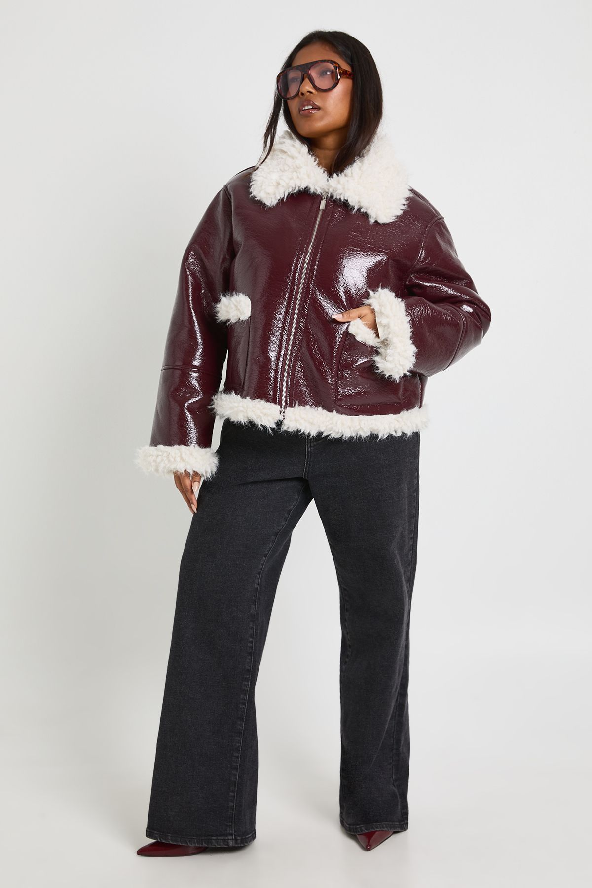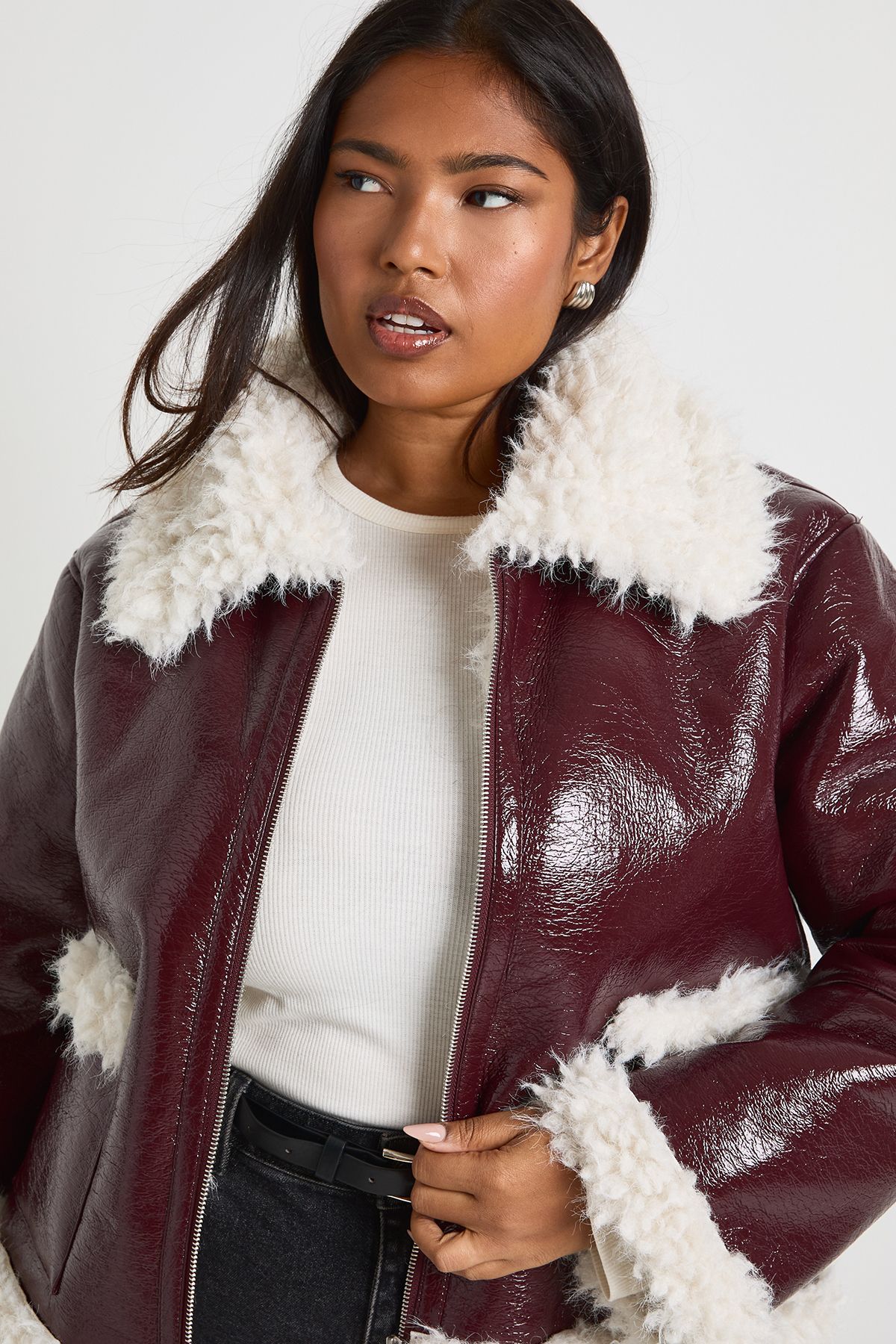 - Make a bold statement with this eye-catching vinyl jacket, perfect for the fashion-forward woman who loves to stand out. The glossy exterior creates a sleek, contemporary look, while the plush faux fur trim adds a touch of luxury and warmth. Ideal for casual outings, this jacket pairs effortlessly with wide-leg jeans and trainers for a relaxed yet stylish ensemble. Layer it over a cosy jumper for extra warmth during chilly autumn days or wear it open over a simple tee for a more laid-back vibe. Whether you're heading to a family gathering or meeting friends for a casual lunch, this jacket will ensure you're turning heads for all the right reasons. Its versatile design makes it a go-to piece for various casual events, allowing you to express your unique style with confidence.