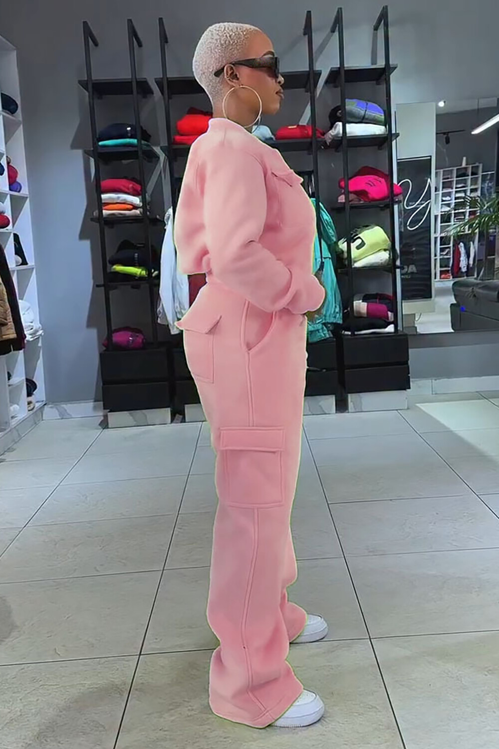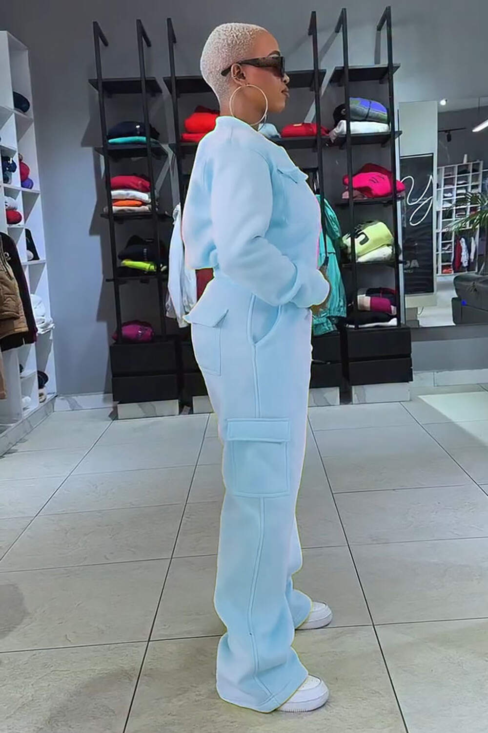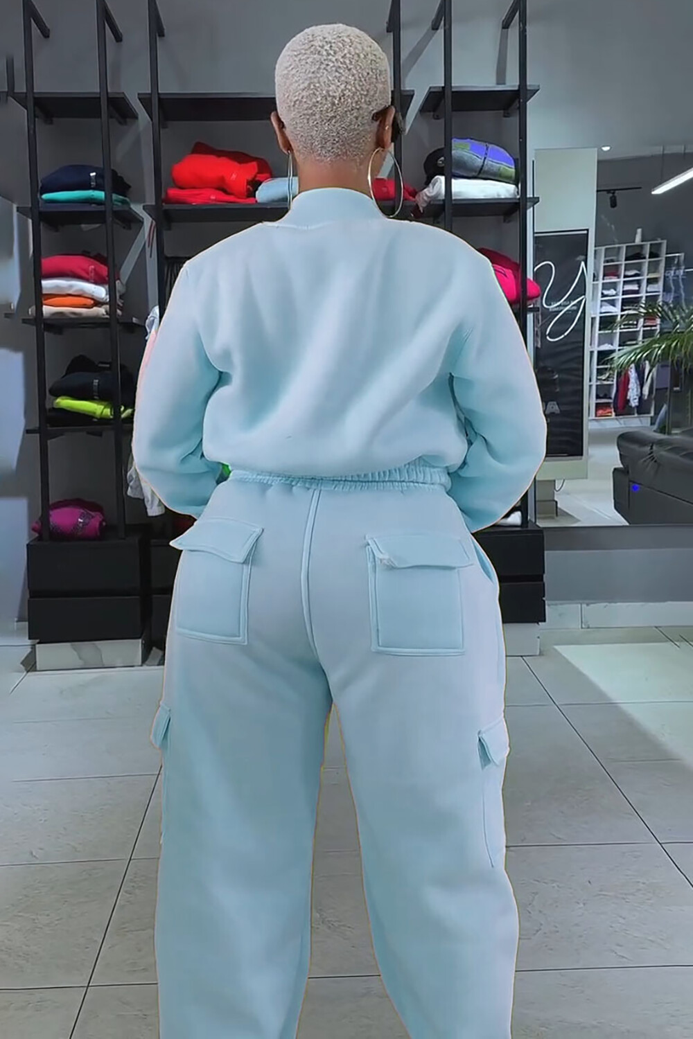 Pockets Crop Jacket Solid Color Straight Leg Pants 2pcs Set-Yellow