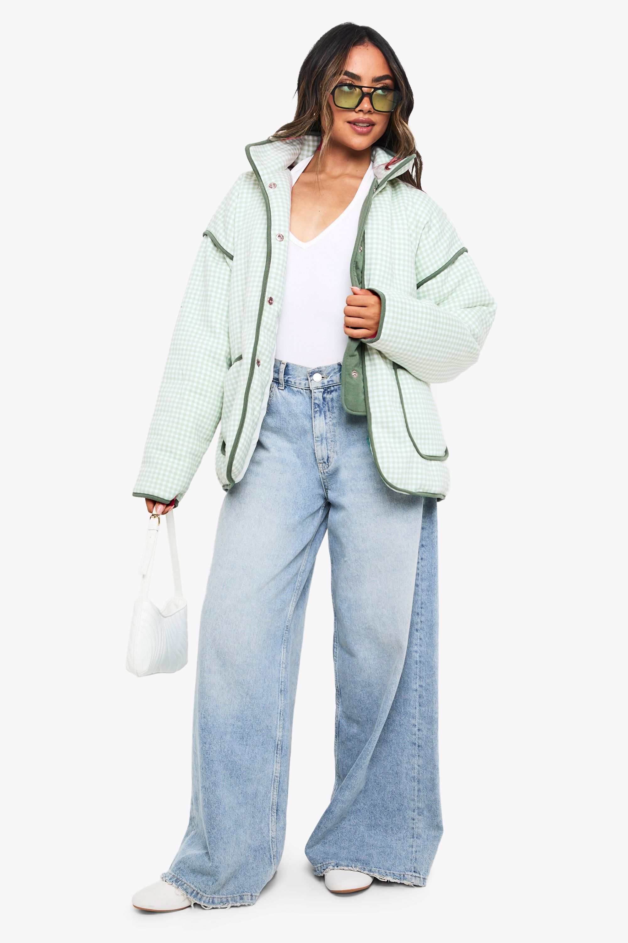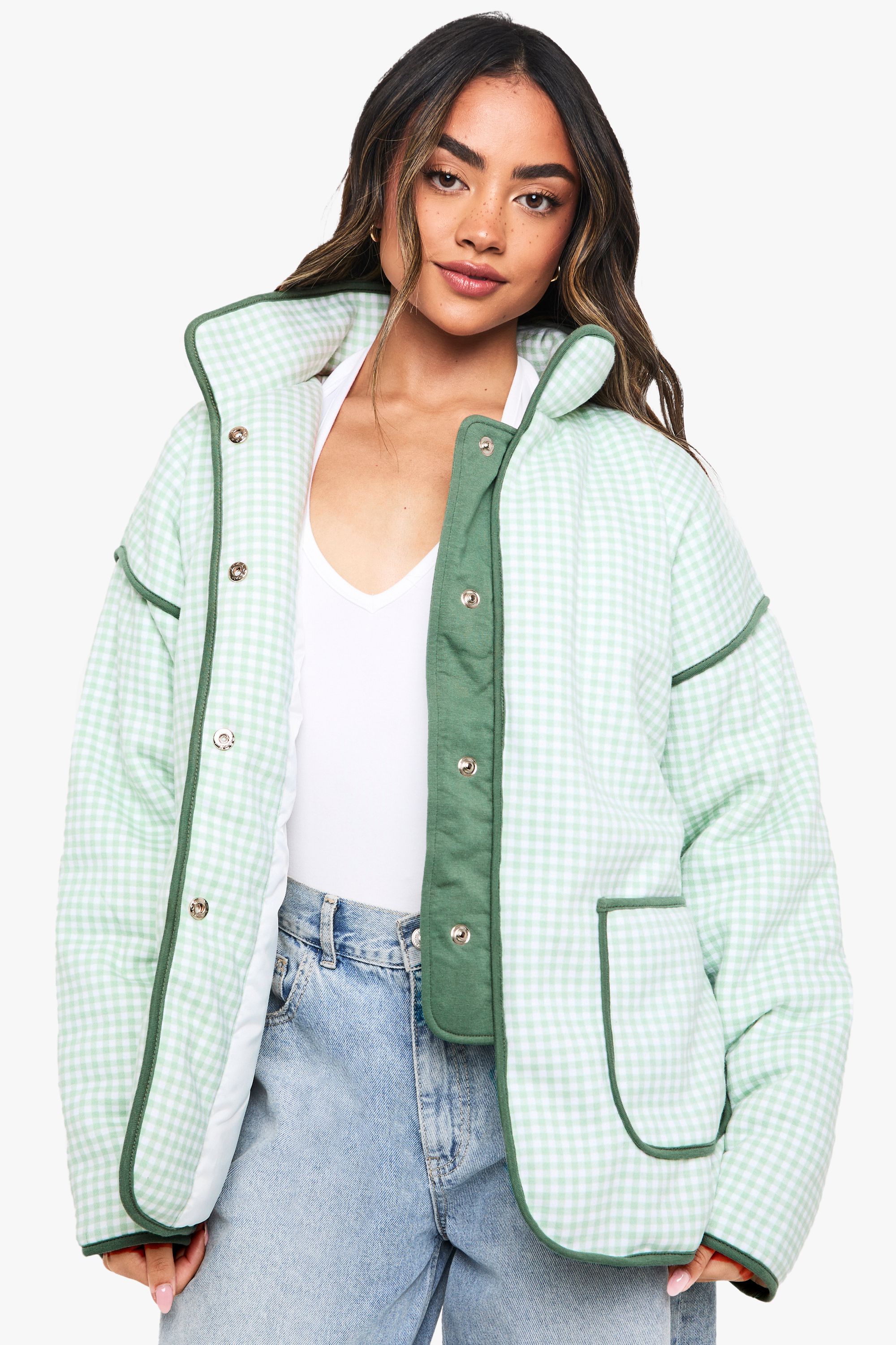 - Quilted construction providing lightweight insulation for transitional weather Make a statement with this eye-catching oversized jacket that combines fashion-forward design with practical functionality. The relaxed fit allows for versatile styling options-layer over a simple white vest top and wide-leg jeans for an on-trend casual look, or pair with a midi dress and trainers for weekend brunches. The distinctive check pattern and contrasting trim create visual interest, whilst the roomy pockets offer practicality for everyday wear. Perfect for unpredictable British weather, this jacket works brilliantly for family gatherings, festival outings, or casual coffee dates. For cooler evenings, style with a chunky knit underneath and add a crossbody bag to maintain the contemporary silhouette. This boohoo jacket effortlessly balances comfort with street-style appeal, making it a versatile addition to your wardrobe that will see you through multiple seasons.