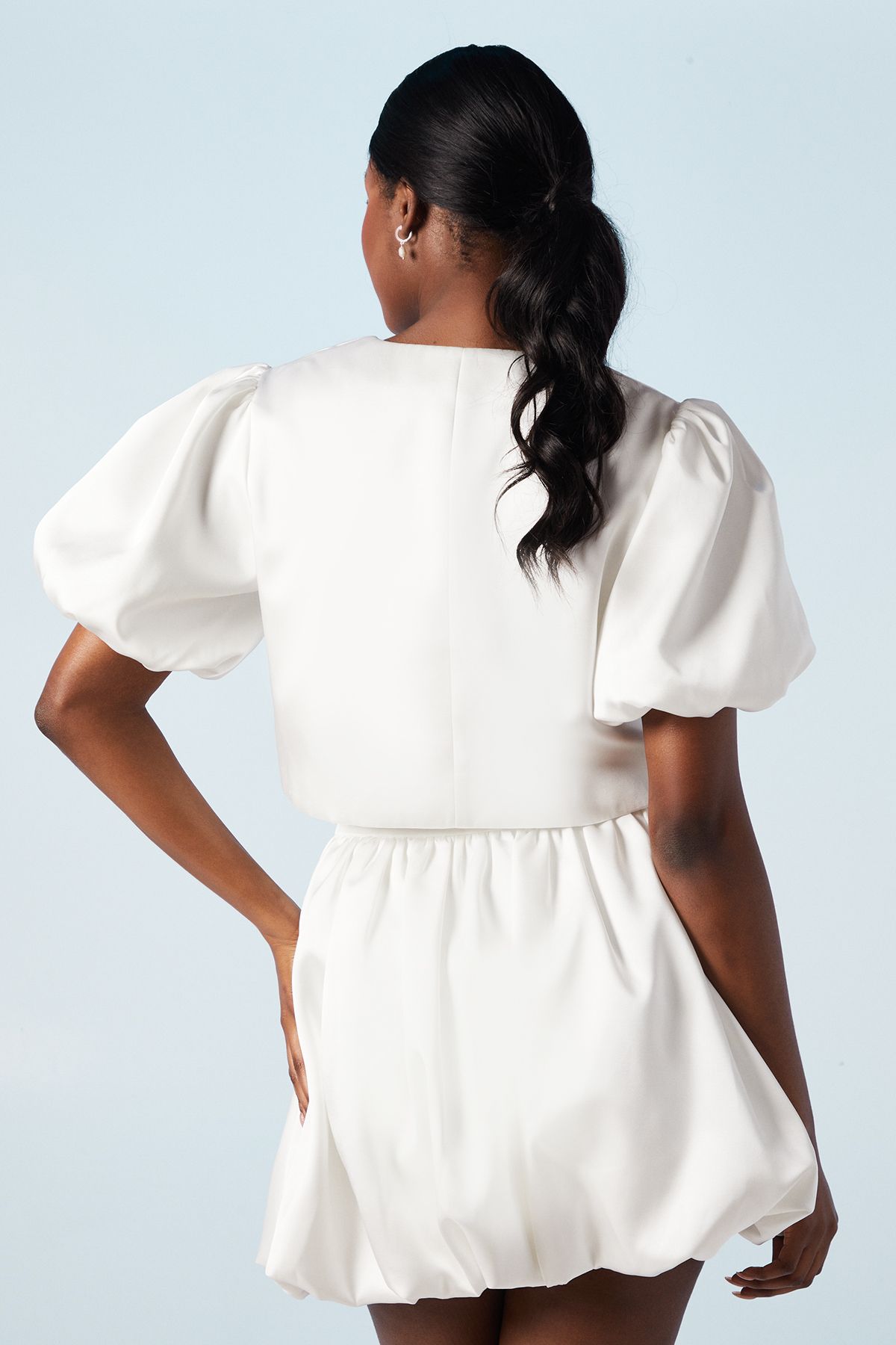 • Make a stunning entrance on your special day with this exquisite bridal jacket from Oasis. The puff sleeves add a touch of drama and femininity, while the bow details along the front create a charming focal point. This cropped jacket is designed to complement your wedding gown beautifully, allowing you to customise your bridal look throughout the day. Pair it with a flowing gown and delicate jewellery for the ceremony, then remove it to reveal your dress for the reception. The versatile design makes it suitable for both traditional and contemporary weddings, ensuring you'll feel confident and radiant as you walk down the aisle. This jacket is not just for the big day - it can be styled with elegant trousers or a midi skirt for other special occasions, making it a treasured piece in your wardrobe long after you say ""I do"".