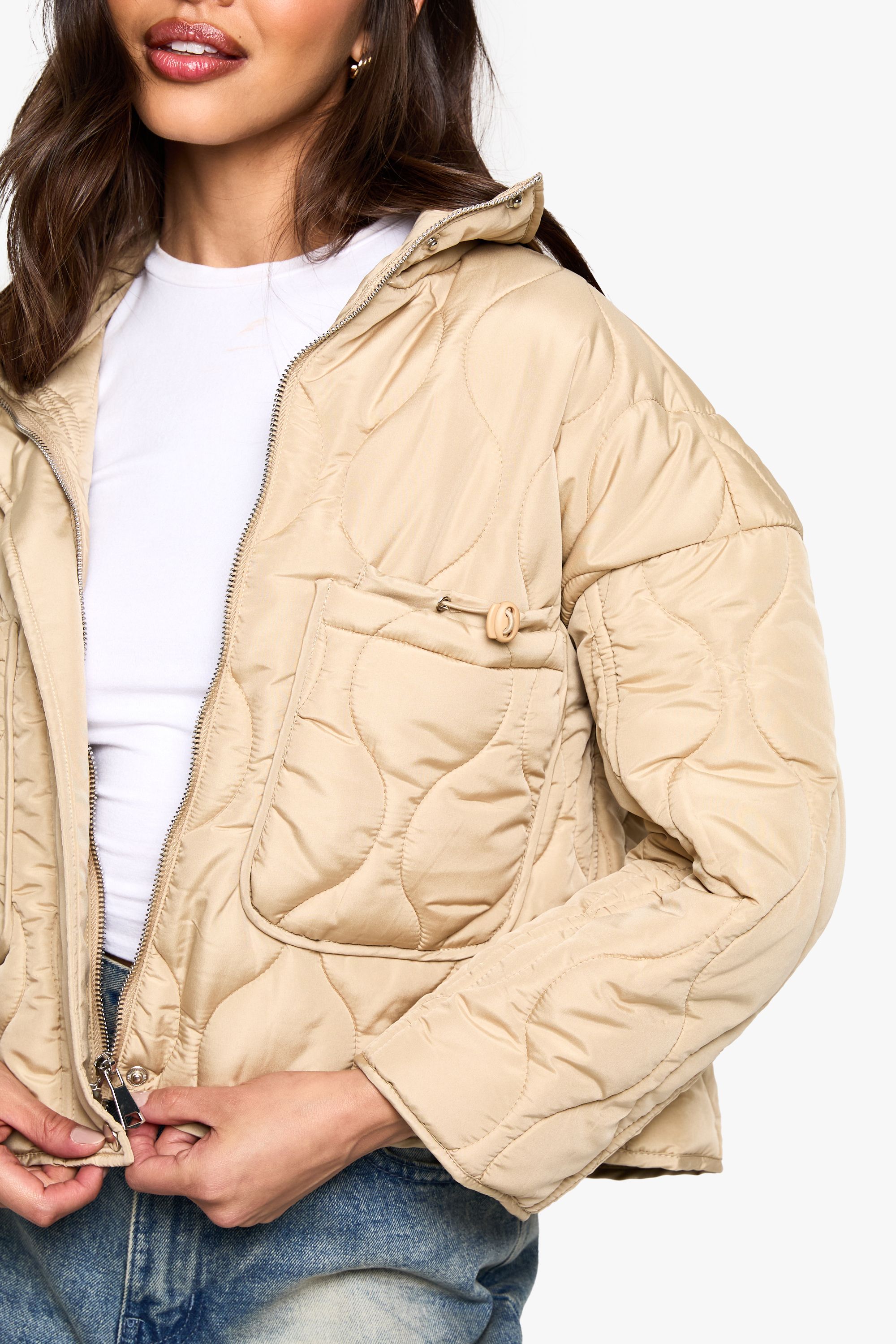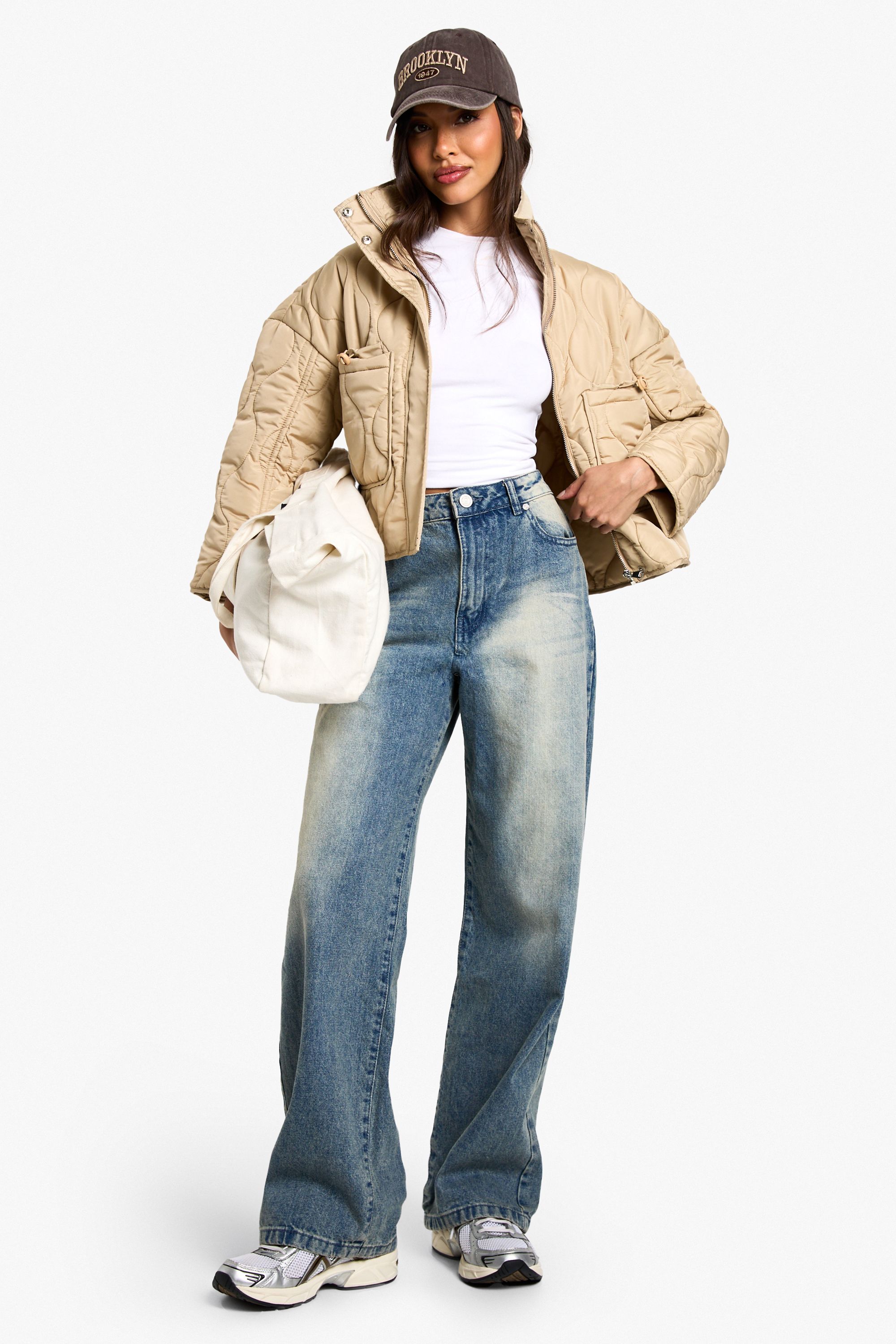 - Versatile collar that can be worn up or down Embrace the cool-girl aesthetic with this padded jacket featuring eye-catching quilted detailing. The oversized fit offers both comfort and style, perfect for layering over your favourite outfits. As seen on our model, pair it with wide-leg jeans and trainers for an effortlessly chic look. The versatile design makes it suitable for various casual occasions, from coffee runs to weekend shopping trips. Add a baseball cap and a tote bag to complete the ensemble. This jacket is a must-have for those chilly autumn days or as a lightweight option for mild winter weather. Its adaptable nature allows for easy styling with both relaxed and slightly dressier outfits, making it a valuable addition to any fashion-forward wardrobe.