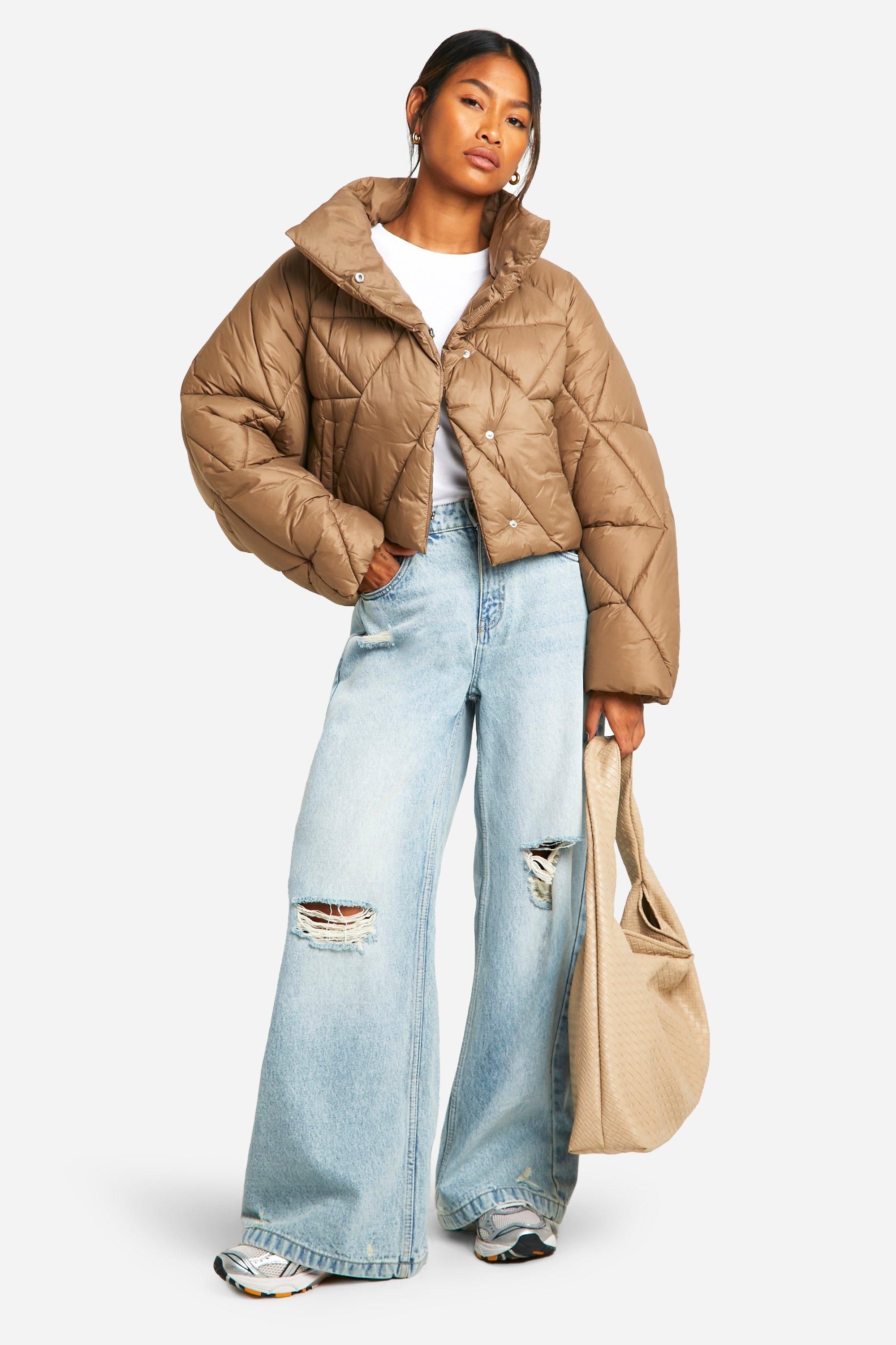 • The Kastige Steppjacke from Boohoo is the ultimate cool-weather companion for the fashion-forward woman. This quilted jacket boasts a chic oversized fit that's perfect for layering over your favourite autumn ensembles. The cropped length adds a modern twist to the classic puffer style, making it ideal for pairing with high-waisted jeans or trousers. Style it with wide-leg denim and trainers for a casual day out, or throw it over a midi dress and boots for a trendy contrast. The high collar not only keeps you cosy but also adds a touch of sophistication to your look. Whether you're heading to a casual gathering with friends or running errands in the city, this versatile jacket is sure to become your go-to outerwear piece for those chilly days.