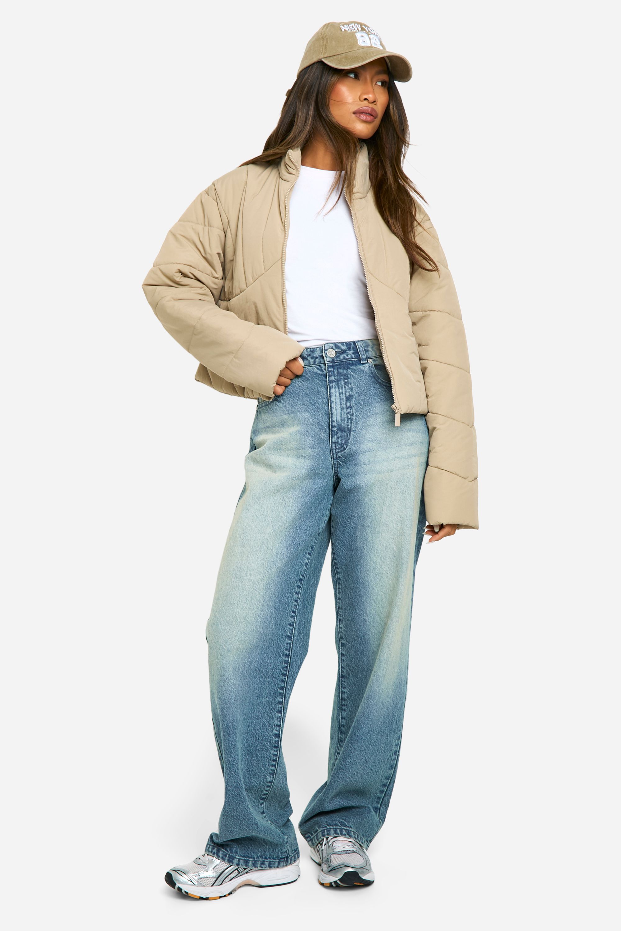 • Cropped length perfect for layering This trendy steppjacke is the ultimate addition to your casual wardrobe, offering both style and practicality. The quilted design not only provides extra warmth but also adds a fashionable texture to your look. Pair it with your favourite jeans and a simple white tee for an effortlessly cool ensemble, perfect for weekend brunches or casual shopping trips. The cropped length makes it ideal for showing off high-waisted trousers or skirts, while the stand-up collar adds a touch of sophistication. For a laid-back vibe, throw it over a hoodie and team with wide-leg jeans and trainers, as seen on our model. Don't forget to accessorise with a baseball cap for those on-the-go days. This versatile jacket is your go-to piece for family gatherings, outdoor events, or simply running errands in style.