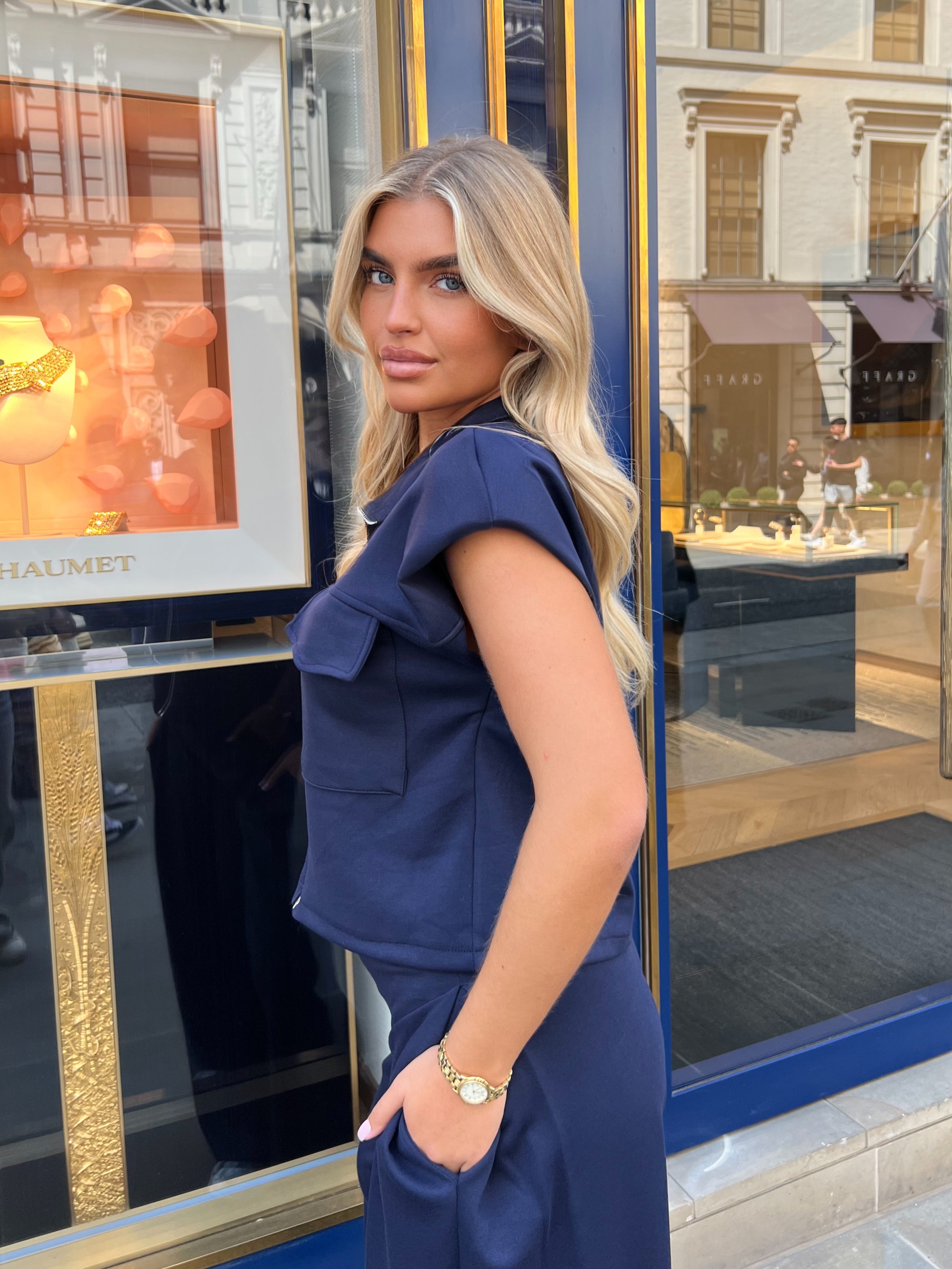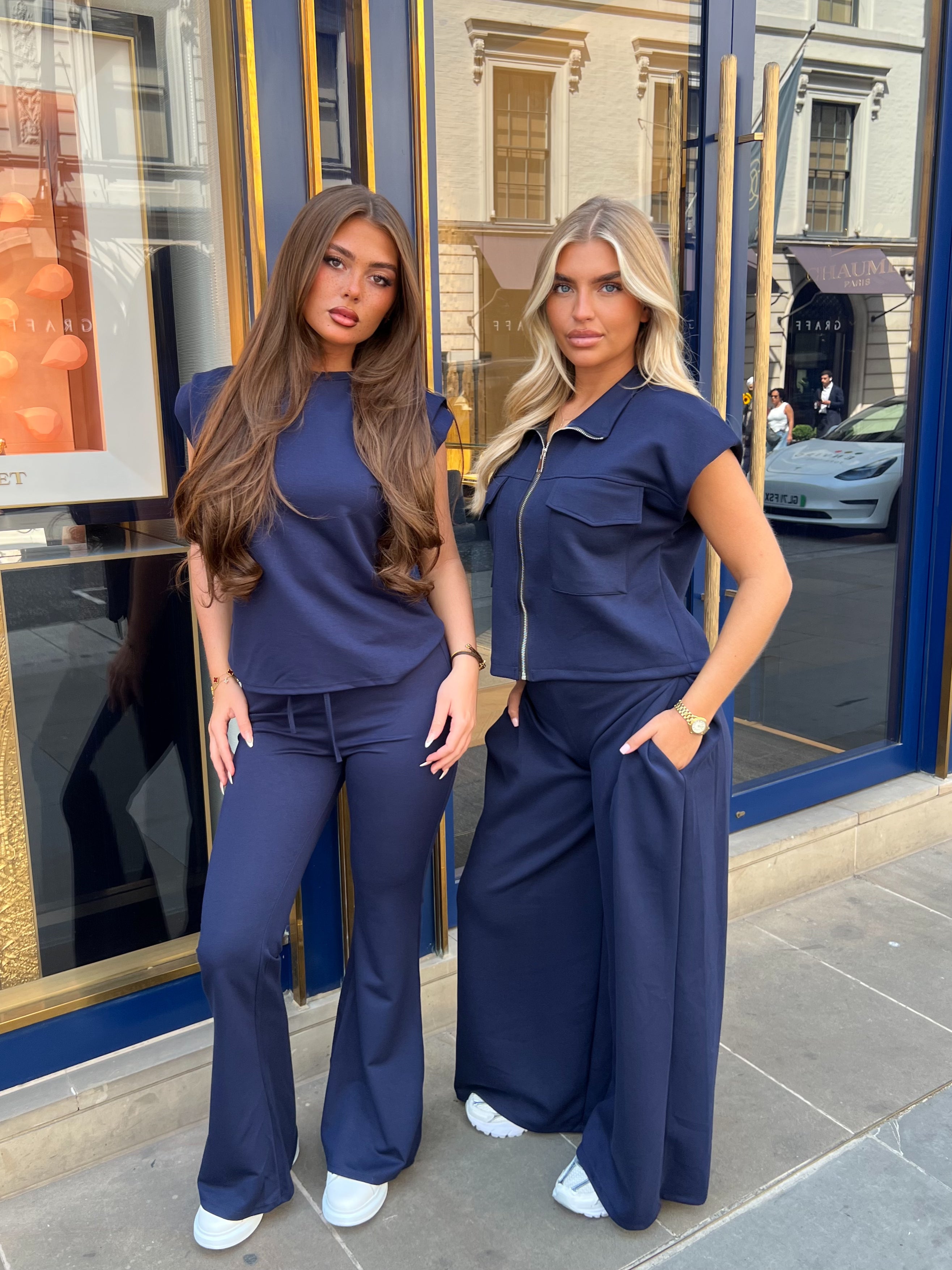 Social Club Navy Zip Short Sleeve Jacket & Wide Leg Trouser Co Ord