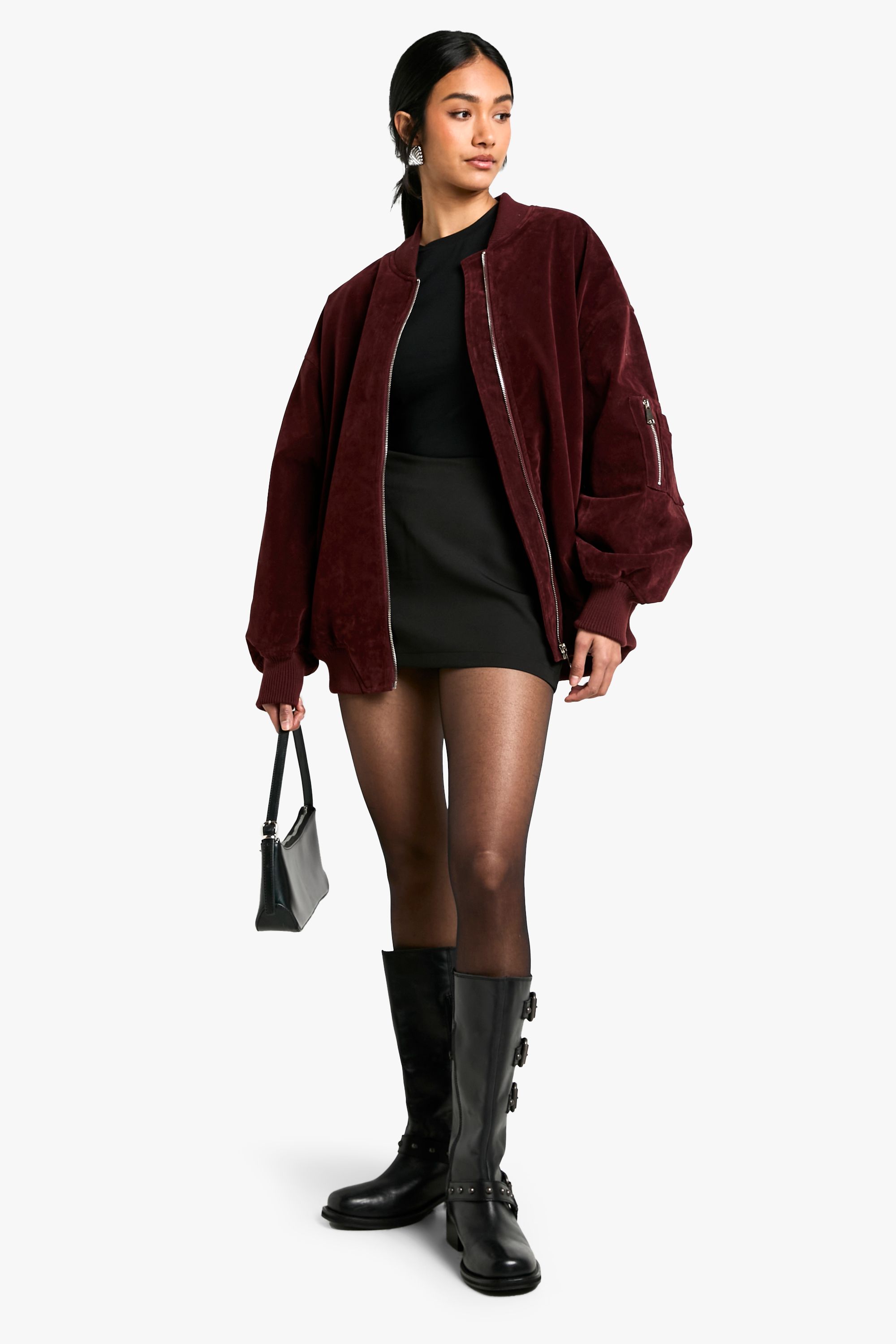 - Oversized bomber jacket in faux suede fabric