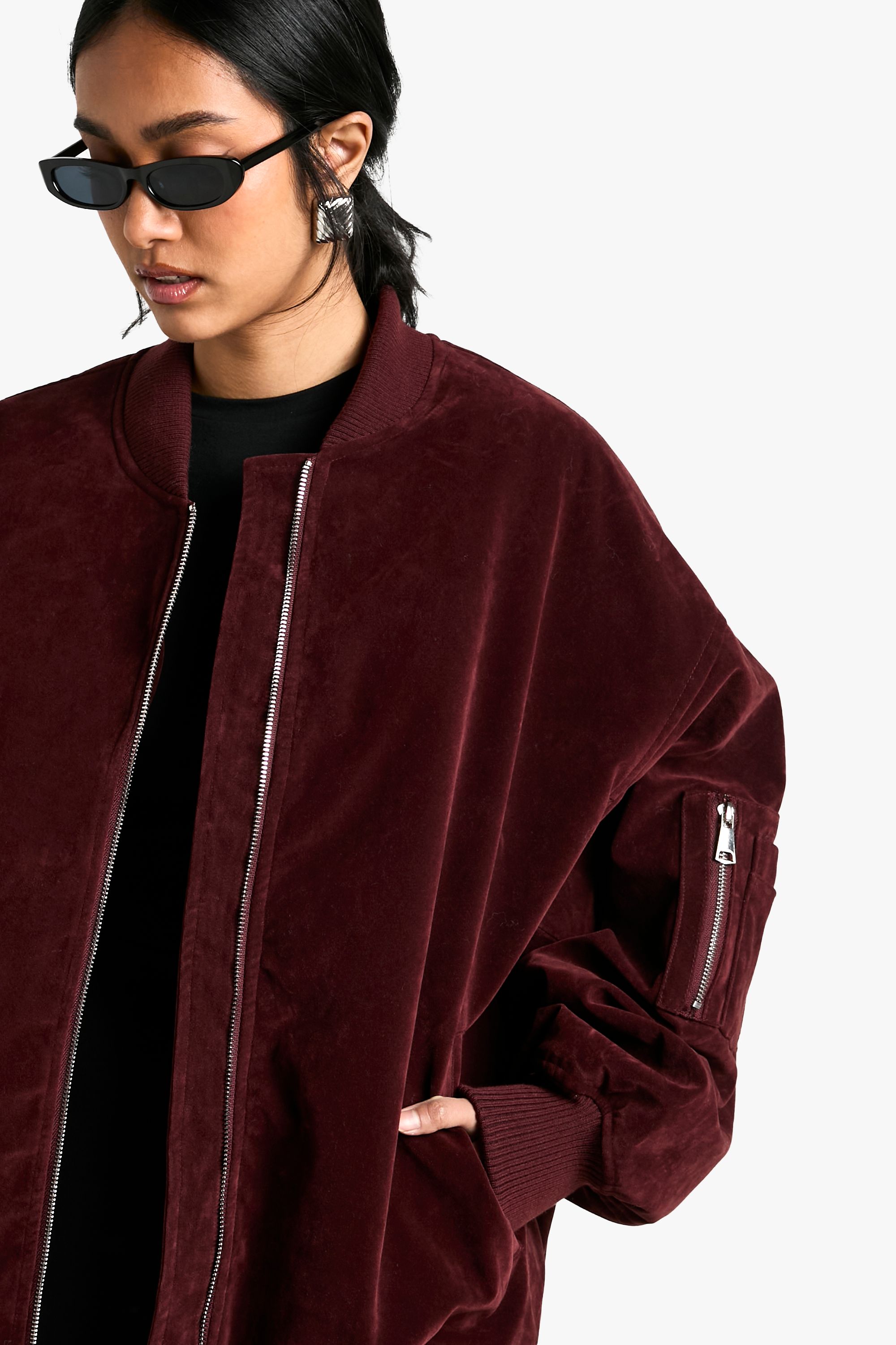 - Relaxed fit with dropped shoulders for a contemporary look Make a bold statement with this oversized bomber jacket in faux suede. Perfect for the fashion-forward trendsetter, this jacket combines classic bomber elements with a modern, relaxed silhouette. The soft texture adds a luxurious touch to your casual ensembles. Style it with a little black dress and knee-high boots for a chic night out, or throw it over a simple tee and jeans for an effortlessly cool daytime look. The versatile design makes it ideal for various casual occasions, from coffee dates to family gatherings. Layer it over a turtleneck and pair with leather trousers for an edgy autumn outfit. The functional sleeve pocket adds a practical element to this stylish piece, perfect for keeping your essentials close at hand. Embrace the oversized trend and make this bomber jacket your go-to outerwear for the season.