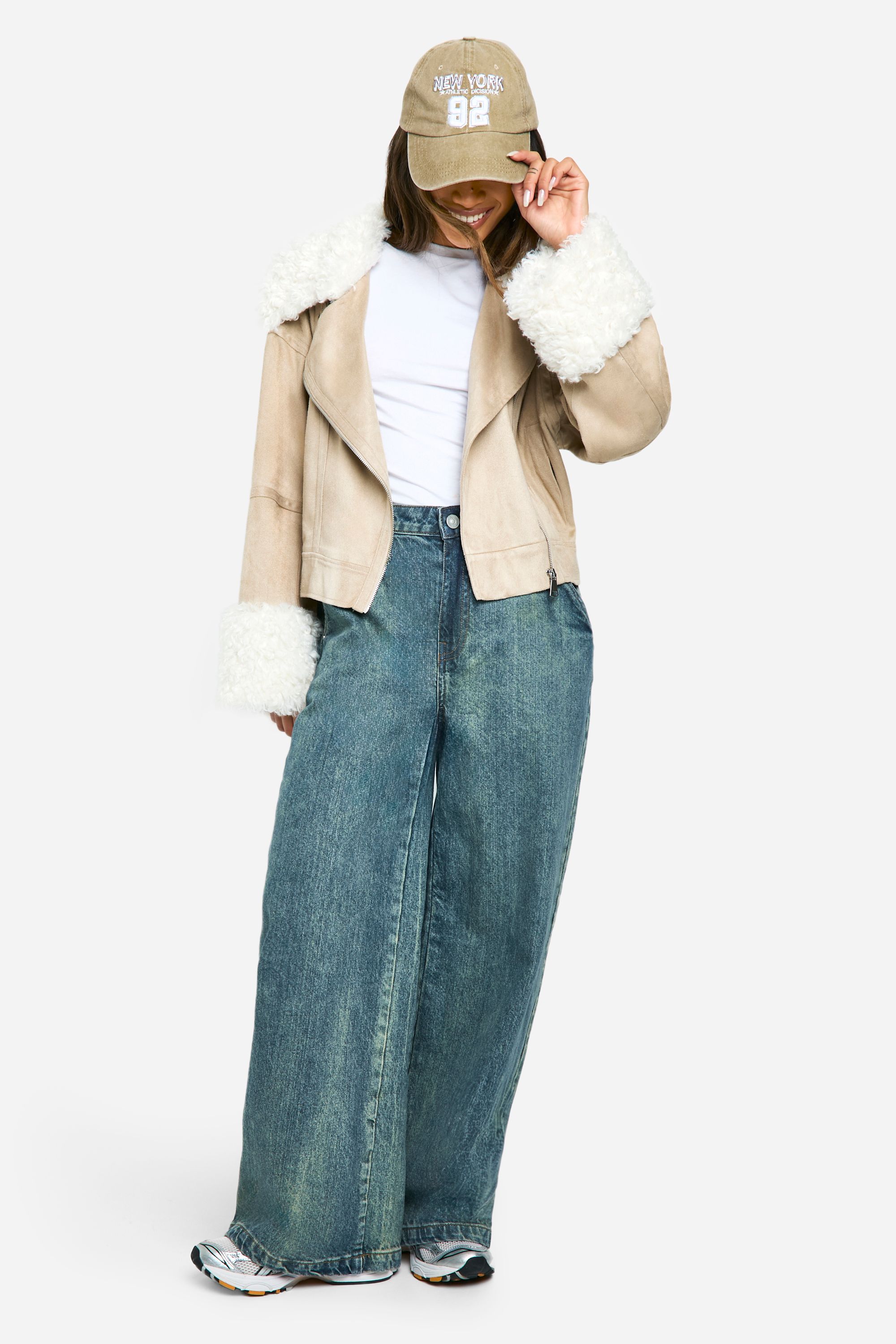 • Versatile cropped length perfect for layering Make a bold statement with this eye-catching teddy-biker jacket. The fusion of smooth outer fabric with plush faux fur accents creates a captivating textural contrast that's sure to turn heads. The oversized collar not only adds a chic element but also provides extra warmth on chilly days. Pair this trendy piece with your favourite jeans and a simple white tee for an effortlessly cool daytime look. For a night out with friends, throw it over a fitted dress and ankle boots. The cropped length makes it ideal for showing off high-waisted trousers or skirts. Whether you're heading to a casual family gathering or meeting mates for coffee, this jacket adds an instant edge to any outfit. Its versatility allows you to dress it up or down, making it a must-have addition to your wardrobe that you'll reach for time and time again.