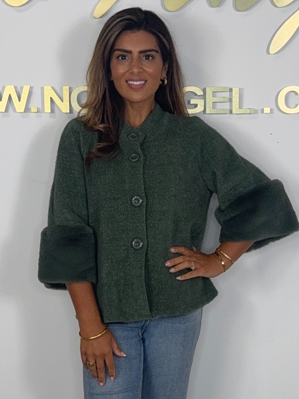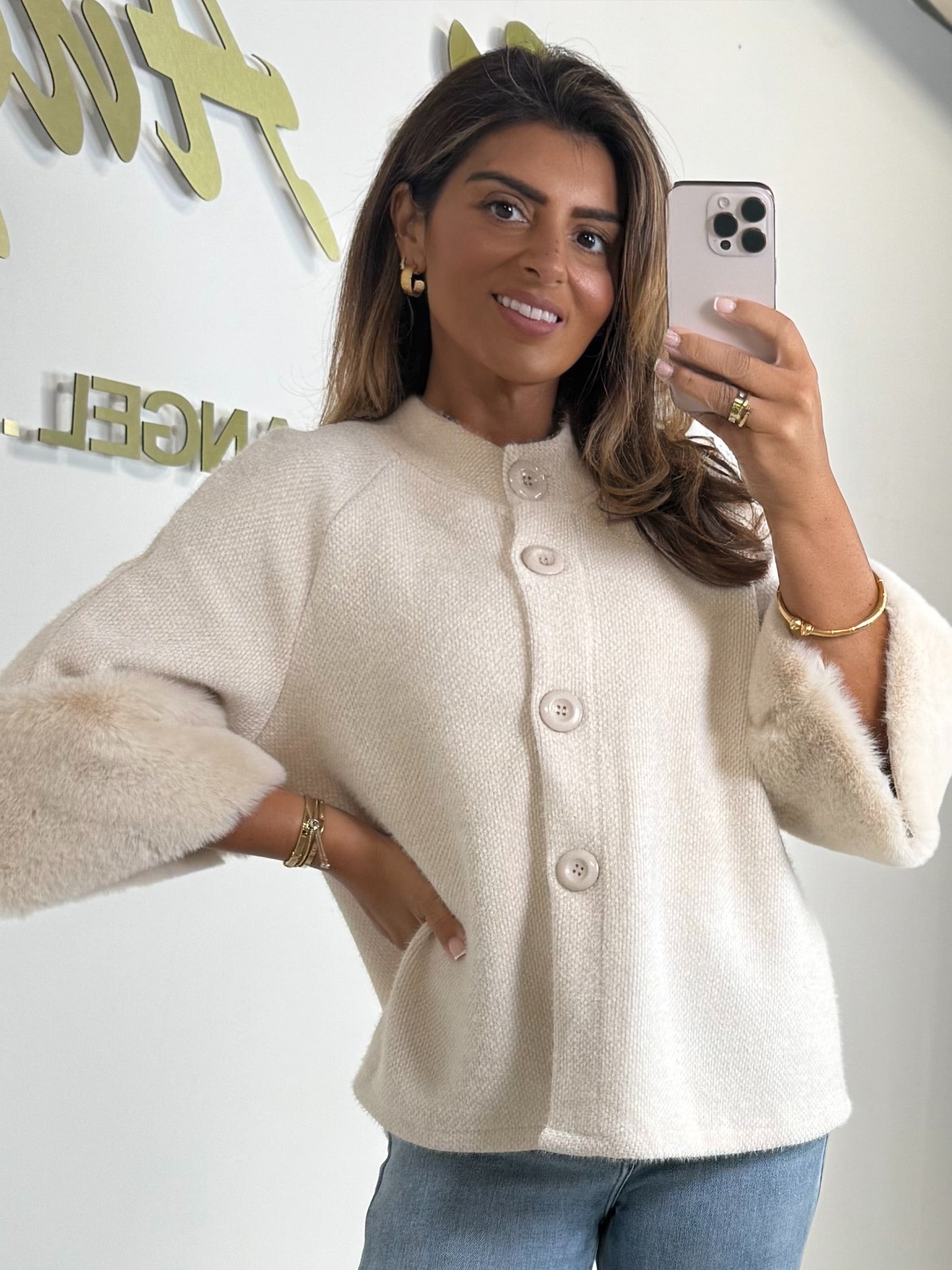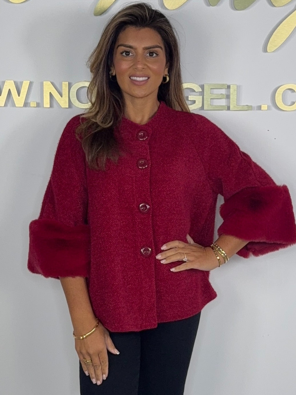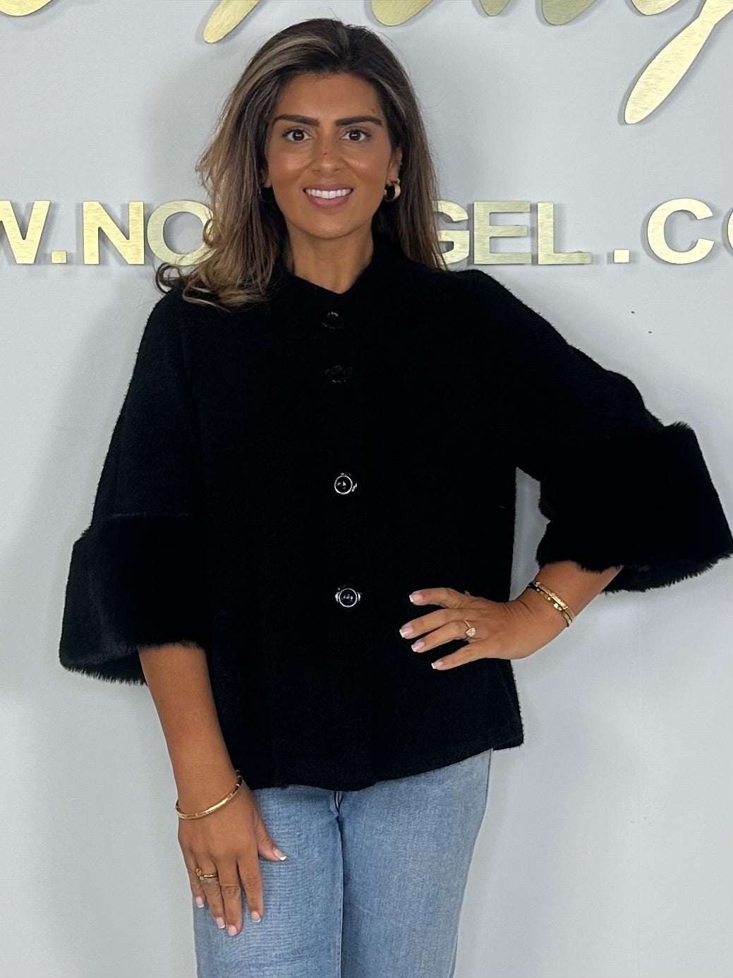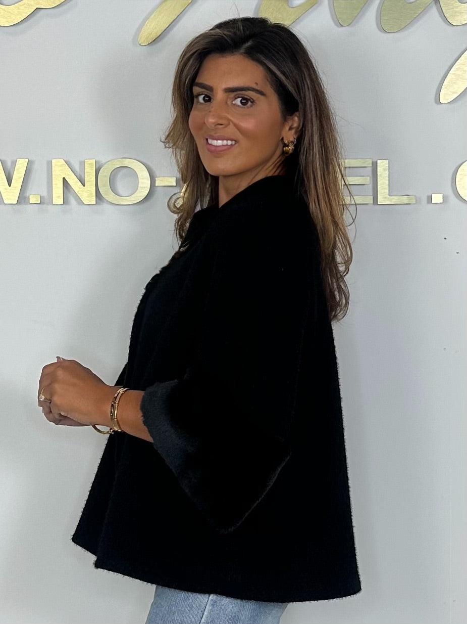 Textured Faux Fur Cuff Sleeve Cape Style Jacket