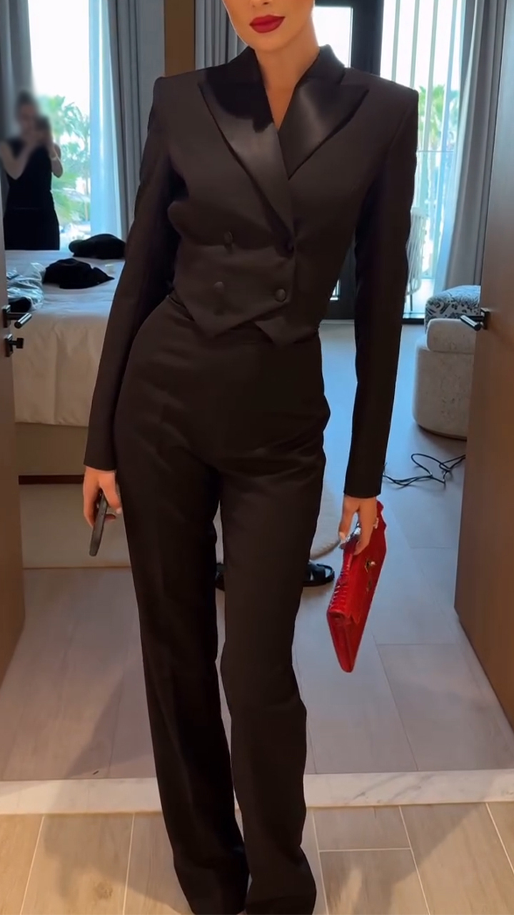 • Women Laple Collar Jacket+ Pants Solid Color Temperament Commuting Suit