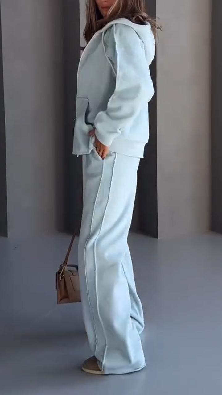 • Women Round Neck Hooded Jacket + Pants Casual Suit