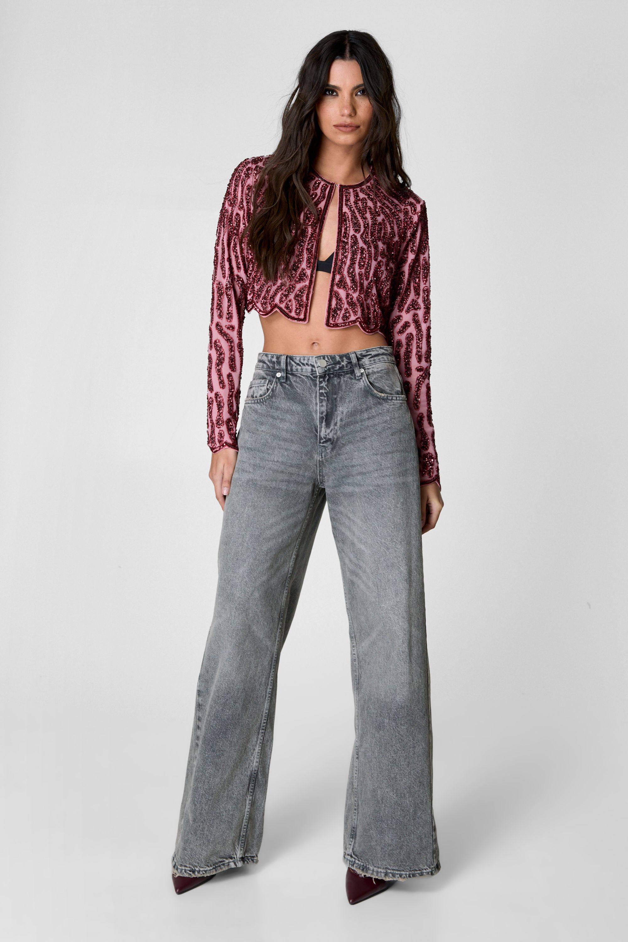 • Make a bold statement with this eye-catching zebra hand embellished two-tone scallop jacket from NastyGal. Perfect for those nights out when you want to turn heads, this woven piece combines intricate detailing with a daring design. The cropped length adds a contemporary edge, whilst the scalloped hem introduces a touch of playful femininity. Style it with high-waisted wide-leg jeans and strappy heels for a night on the town, or pair it with a sleek bodycon dress for a more polished look. The versatile nature of this jacket allows for endless styling possibilities, making it a must-have addition to your going-out wardrobe. Whether you're hitting the club or meeting friends for drinks, this jacket will ensure you stand out from the crowd in true NastyGal fashion.